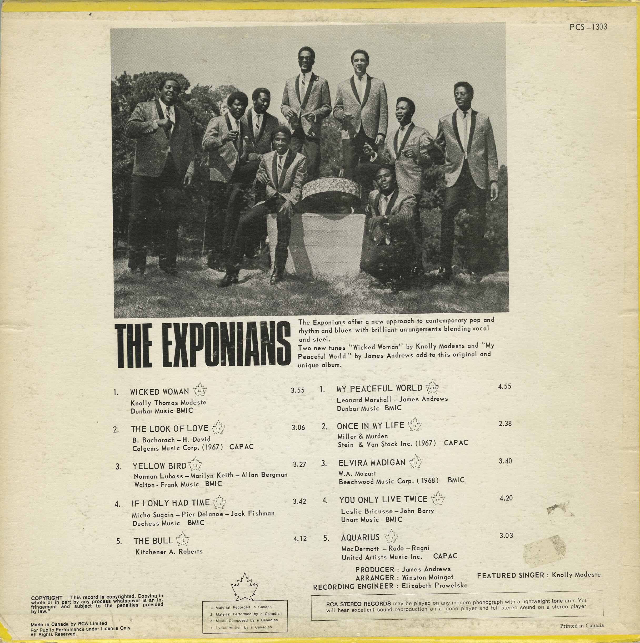 The Exponians offer a new approach to contemporary pop and rhythm and blues with brilliant arrangements blending vocal and steel. Two new tunes "Wicked Woman" by Knolly Modeste and "My Peaceful World" by James Andrews add to this original and unique album.