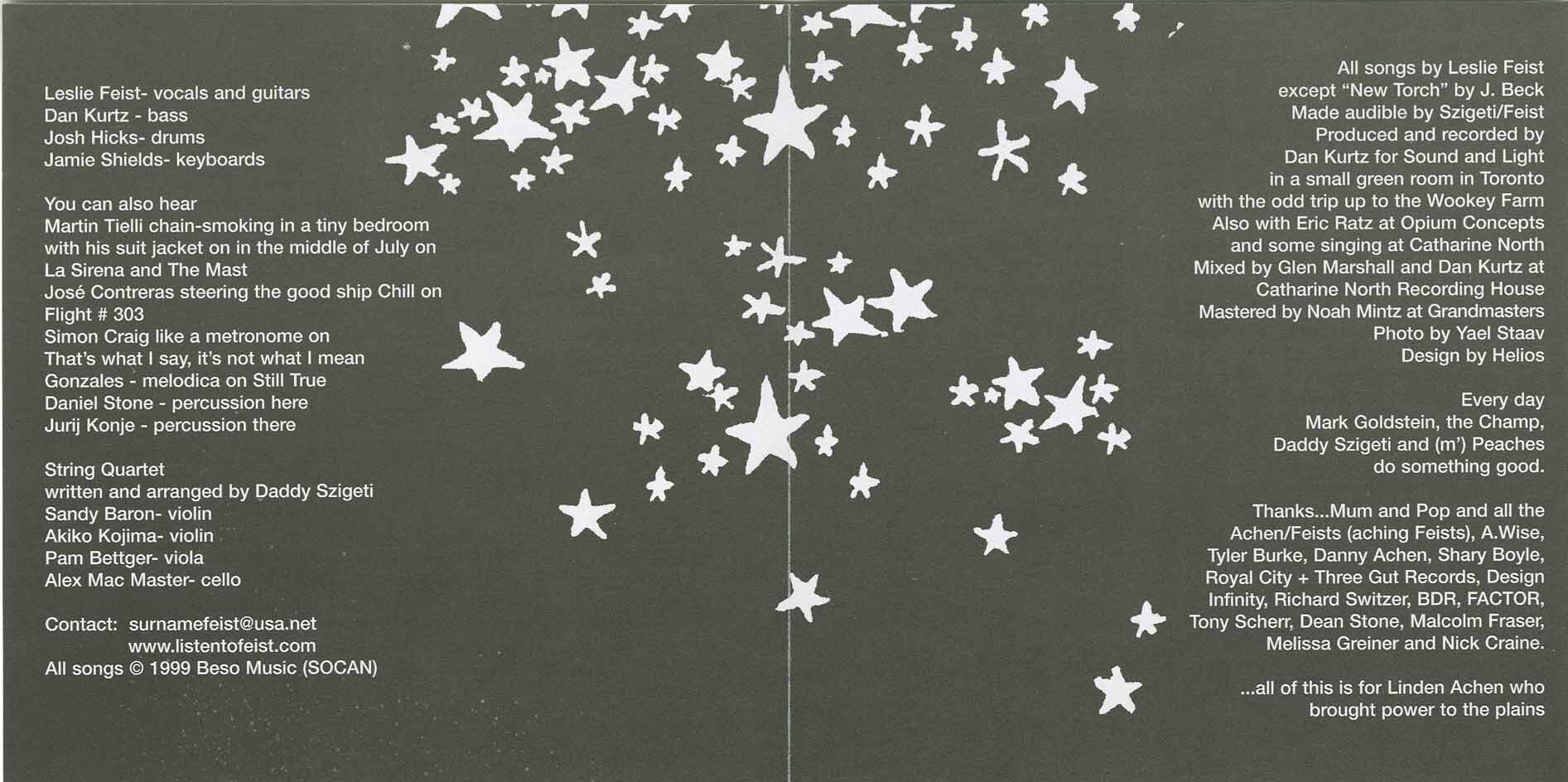 All songs by Leslie Feist except "New Torch" by J. Beck.