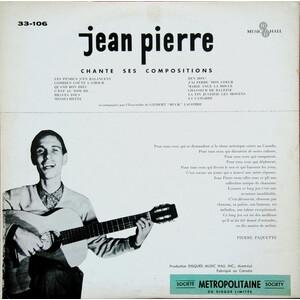 Jean Pierre Chante Ses Compositions Back cover
