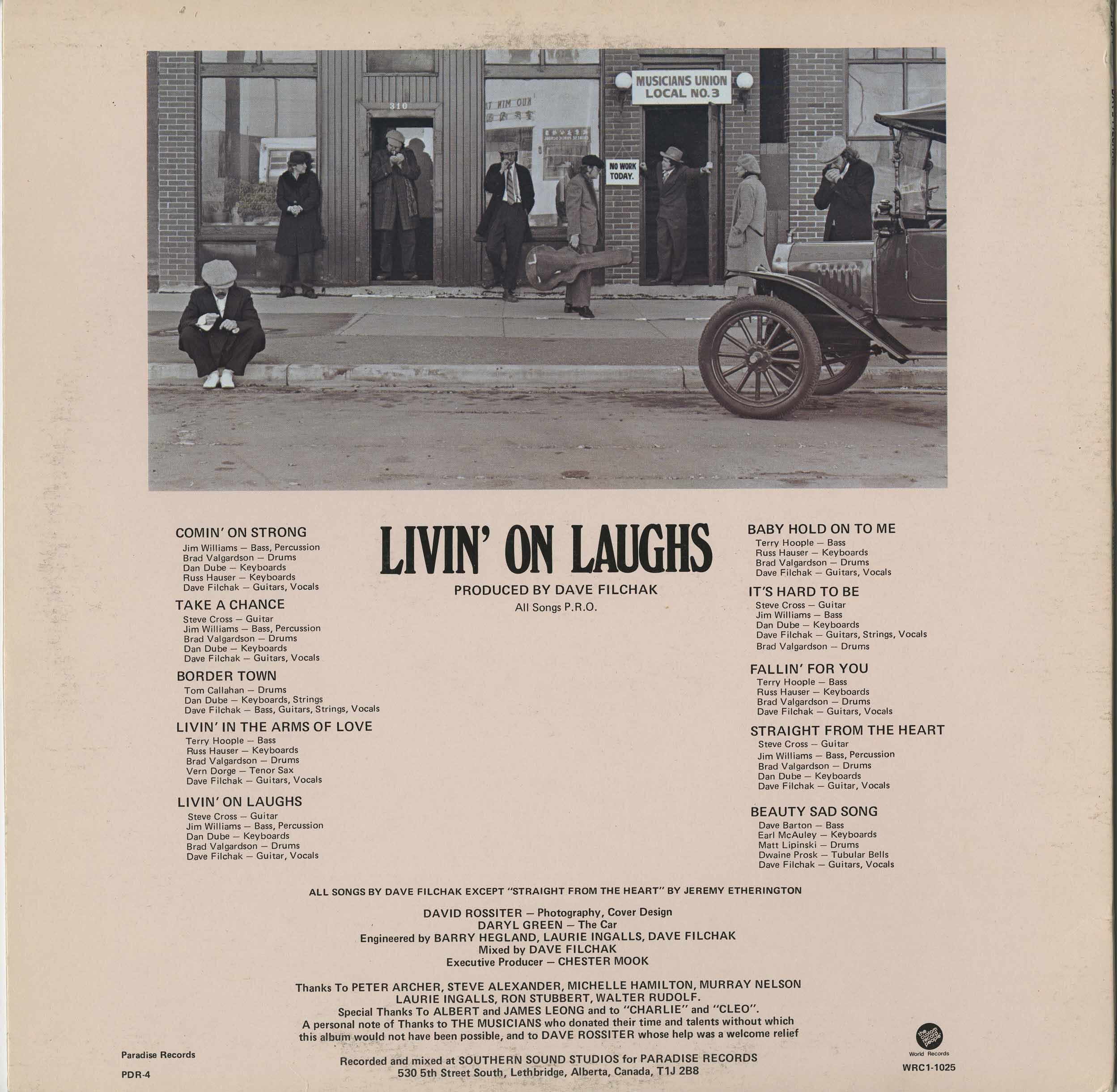 "'Livin’ On Laughs’ was written and recorded after Moses broke up, before I joined 44 Band, which later became Sharp Edges. I moved back to Southern Alberta from Los Angeles in 1978 and got married to my first wife. We bought a house and I built a recording studio in the basement of a local music store called Southern Sound. We got pretty busy in the studio, recording local artists and travelling artists passing through, radio spots et cetera. In amongst all of that, I wanted to record an album of songs I had been working on but never brought to Moses. These were different types of songs than Moses was doing.