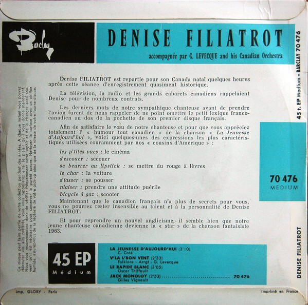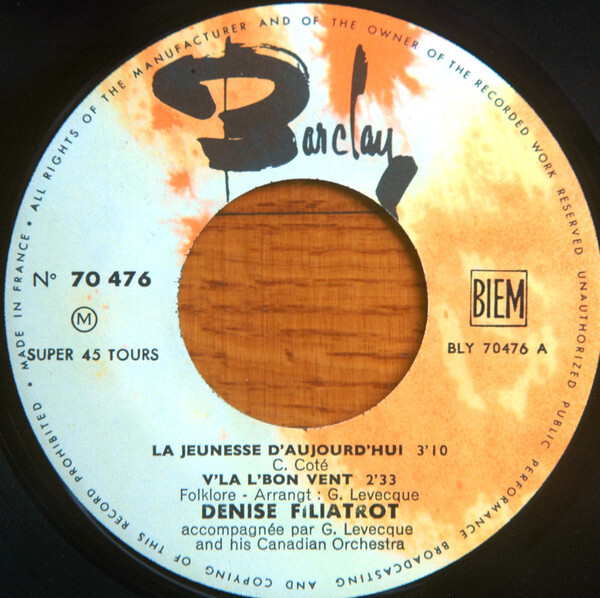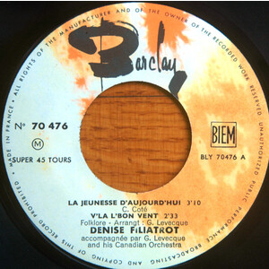 La jeunesse d’aujourd’hui/ V’la l’bon vent b/w Le rapide Blanc/ Jack Monoloy