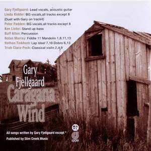 Listen to Caragana Wind and it will sweep you away across the Great Divide and Rocky Mountains, to the edge of the continent. From the Prairies to the Gulf Islands, down the Baja, the journey covers territory and time, stirring up memories and stories, enlivened with a breath of fresh air and fully realized in visionary songs.