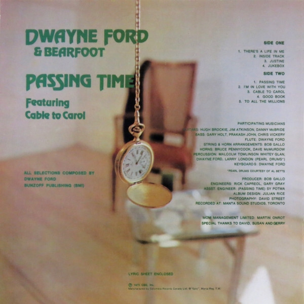 The group recorded a self-titled album that later became absorbed into the Bearfoot catalogue, marking the beginning of Ford’s sustained national presence through the early and mid-1970s. Under the Bearfoot name, the band released multiple albums and toured extensively, blending country-rock roots with increasingly polished pop arrangements. By the time Passing Time appeared in 1975—issued as Dwayne Ford & Bearfoot—Ford had effectively become the project’s creative center, shaping the material while drawing on a rotating cast of musicians.