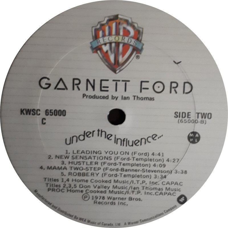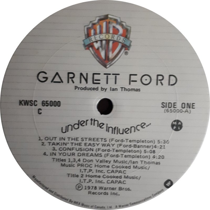 Garnett Ford was a Toronto artist that released his debut album, Under The Influence, with Warner Records in 1978. He was in a band called Pinball previous to this album, in the early seventies, with guitarist Dave Cooper. Dave has a long history in Canadian music playing with the likes of Tom Cochrane, Edward Bear and Klaatu just to name a few. Dave also contributed guitar to this release as well. Garnett's album was produced by Ian Thomas and you can really hear his influence on this particular release. I really enjoy the song, Hustler, off this album. It's a deep album track, buried on the B-side and was likely never a single. It's got a great groove to it. If you are a fan of Ian Thomas' work in the seventies, you should really enjoy this track. Garnett would release one more album in 1982. That release featured everyone from Kim Mitchell to the late B.B. Gabor. It was also re-issued by a label out of Germany called Long Island Records. His debut however, hasn't received the same treatment.