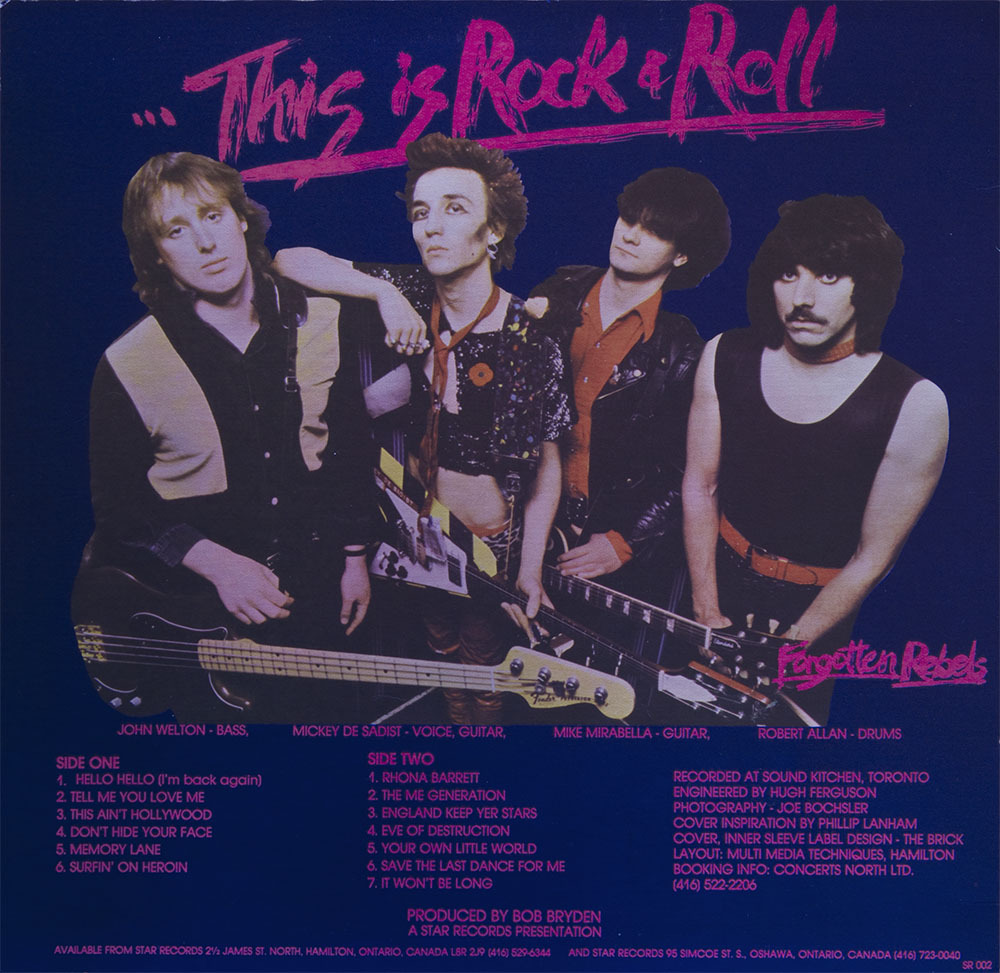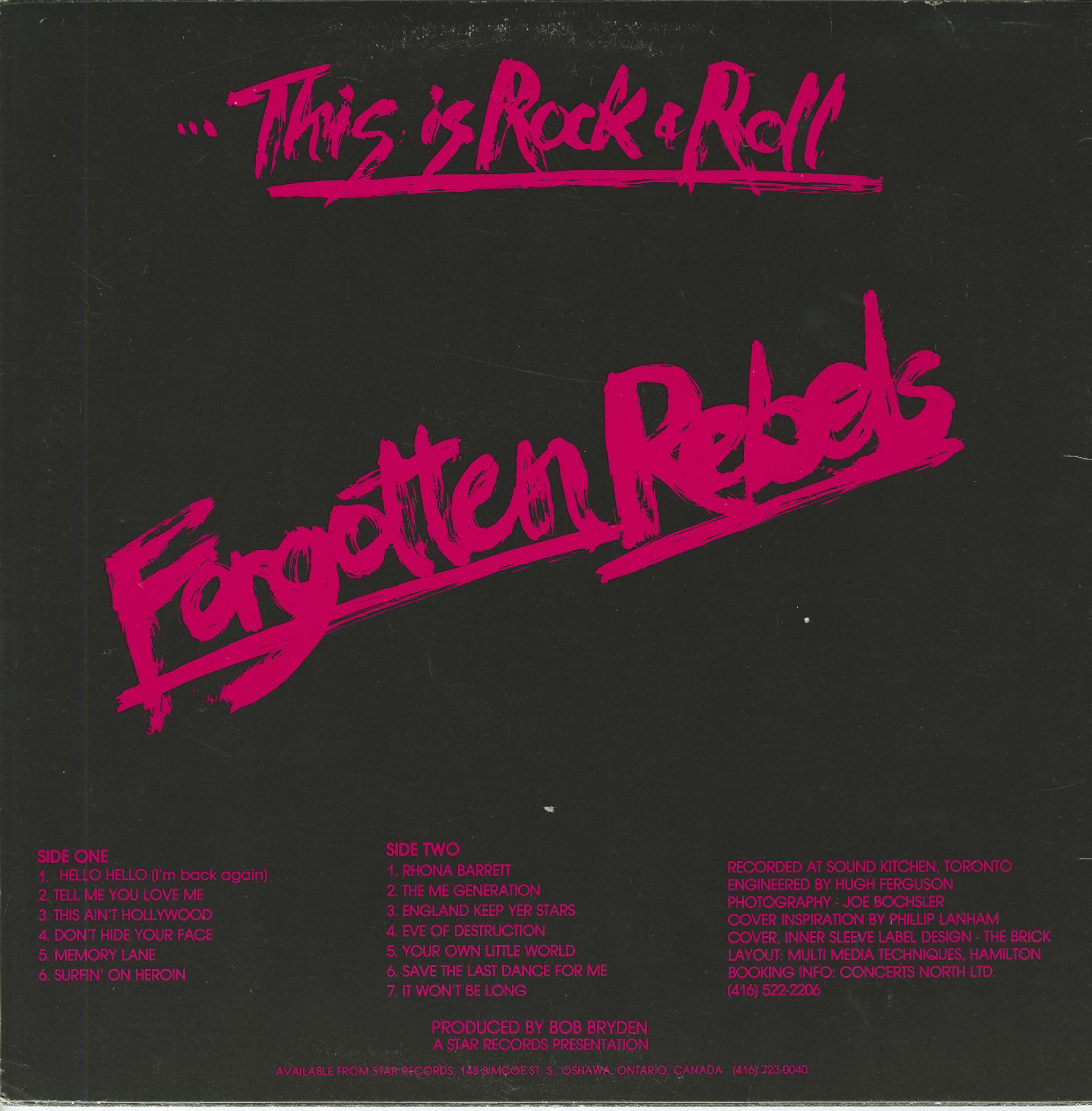 - November 1981 - record The Forgotten Rebels 'This Ain't Hollywood' LP at Sound Kitchen in Toronto, ON. (Source: Bob Bryden's website)