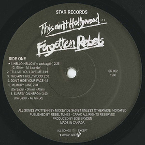 - May 14, 1982 - Forgotten Rebels 2nd LP, 'This Ain't Hollywood is released on Star Records. (Source: Bob Bryden's website)