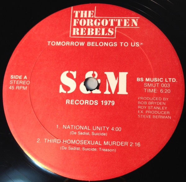 - December 1978: Bob Bryden was approached by Mickey De Sadist and Chris Suicide to mix Forgotten Rebels EP 'Tomorrow Belongs To Us' (S&M Records). Begin mixing same month (Dec 11) at Sound Kitchen, Toronto (Source: Bob Bryden's website)