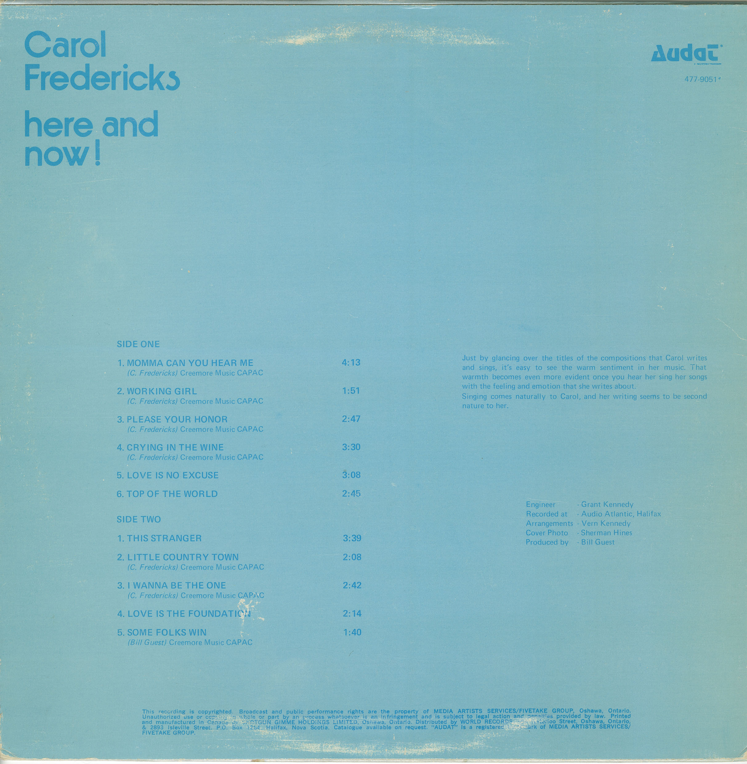 All songs written by Carol Fredericks except “Some Folks Win” written by Bill Guest and “Love Is No Excuse”, “Top of the World”, and "Love is the Foundation" (no composers listed)