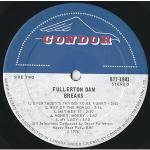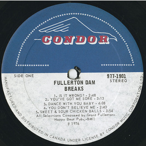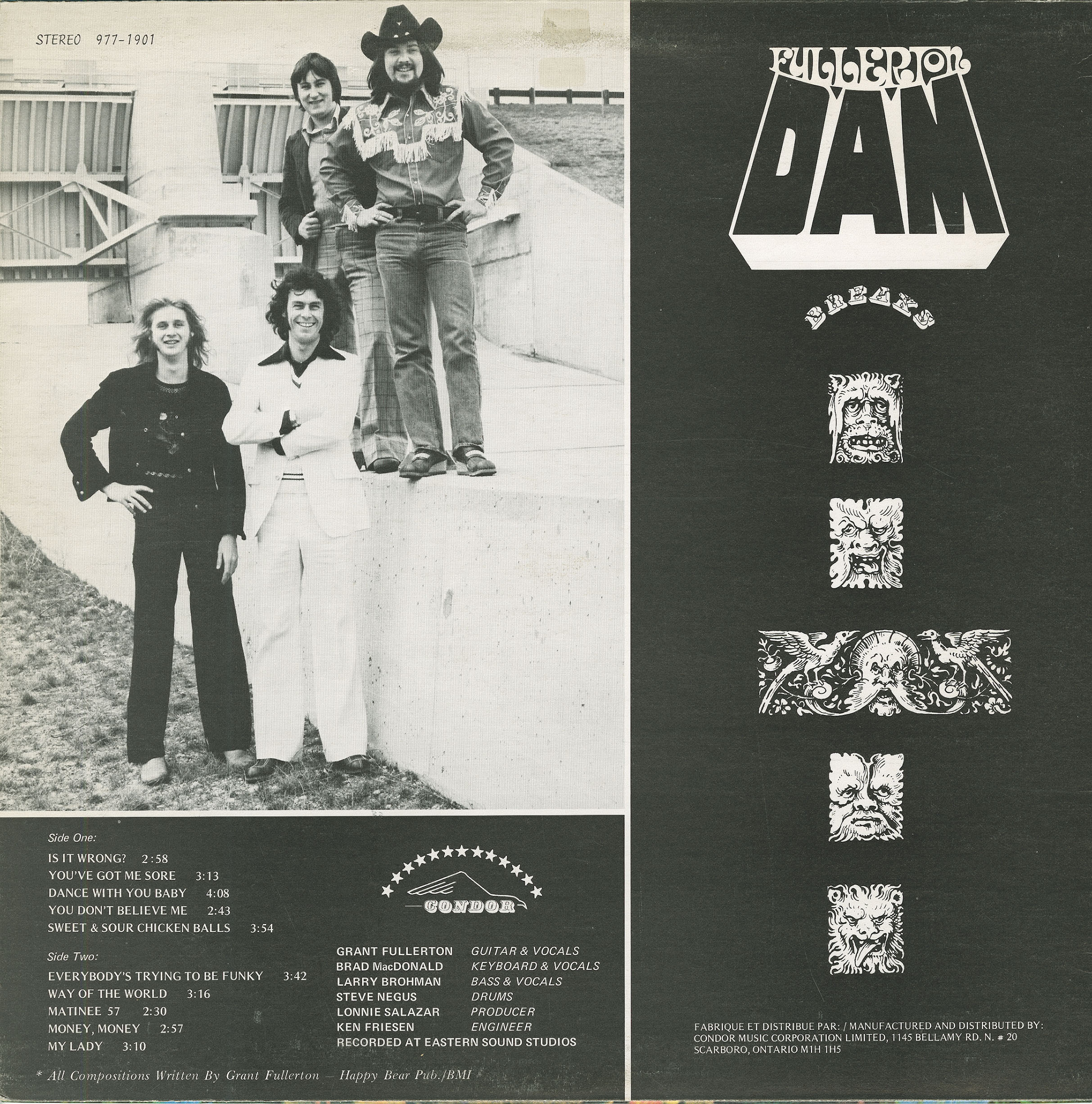 Fullerton Dam formed in 1974. They released four singles on Polydor Records before recording one album with Polydor Records. The album came with two different covers. The Fantasy cover is the rarer version. In 1977, they formed the Madcats with Grant Fullerton, Bobby Blake, Brad MacDonald, Glen Gratto and John Erdman. They released two albums and a few singles. In 1981, they formed The Grant Fullerton Band with Grant Fullerton, Brad MacDonald, Rod Blacker and Steve Campbell, and recorded an album and single.