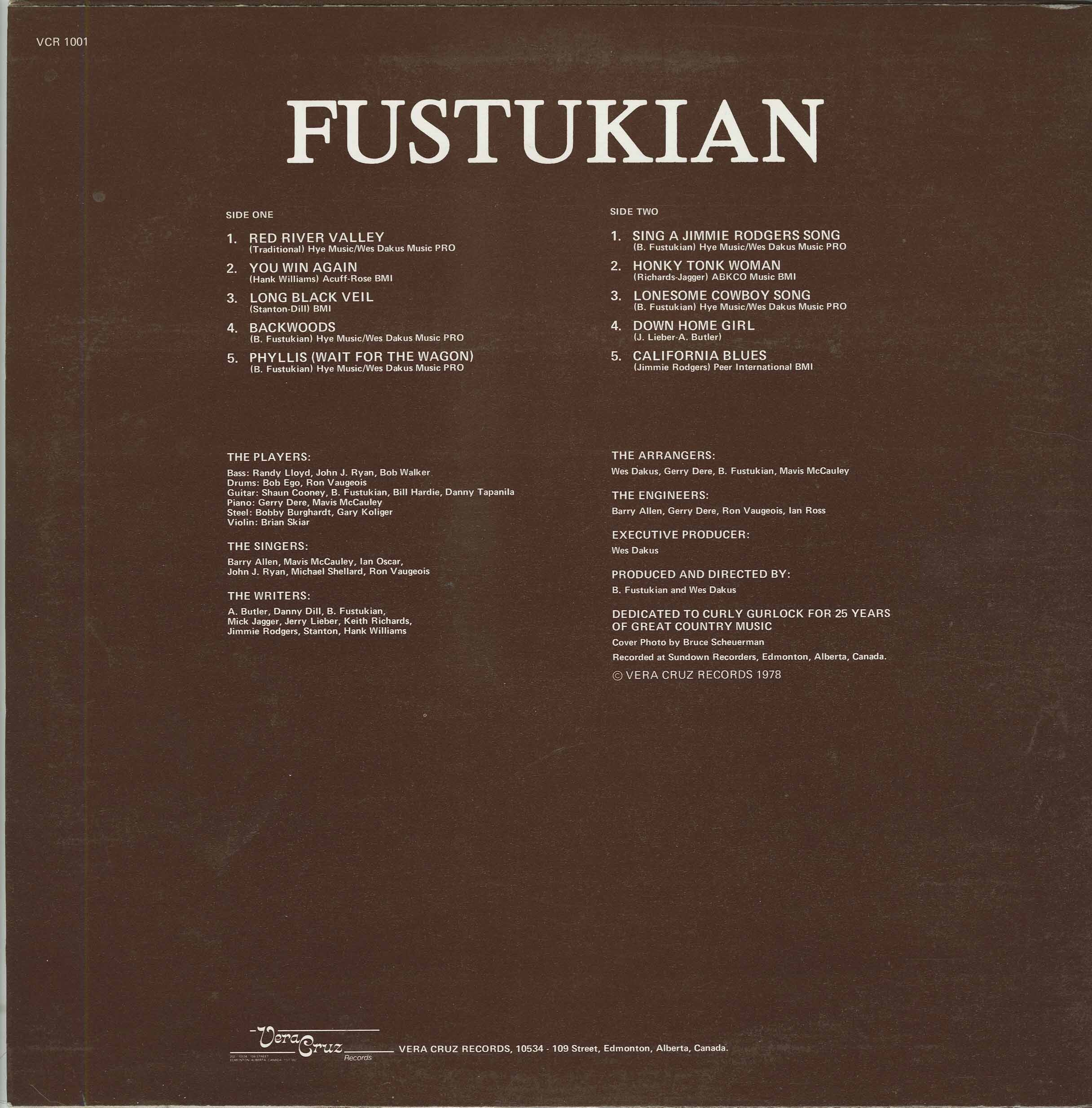 Bryan Fustukian is another of Canada’s unheralded vinyl heroes. His 1979 self-titled album, Fustukian, was released just prior to the launch of Country Music News in 1980, and as such, it received little fanfare in the Canadian music media. Fustukian’s 1981 follow-up LP, “Always”, fared better with coverage in CMN, upon its release - so now its time for a “Flashback” look at the debut album. The album “Fustukian” featured two of Bryan Fustukian’s most notable compositions Phylllis (Wait For The Wagon) which was originally issued as a single on Casino Records, earning Top 20 charting on RPM in 1976; and Lonesome Cowboy Song, which surprisingly only reached #60 on the RPM charts in 1979. The song had previously been recorded by Nashville artist George Kent, (under the title Singin’ Lonesome Cowboy Songs), and released as the flip-side of Kent’s 1976 Billboard charting single on the Shannon Records label. Also pulled as a single from the “Fustukian” LP was his cover version of the Hank Williams classic song, You Win Again, which peaked at #61 on the RPM Top 100 charts in 1979. The album also featured Fustukian’s covers of classic songs like Red River Valley, Long Black Veil, the Jimmie Rodgers nugget California Blues; and a feisty version of the Rolling Stones favorite, Honky Tonk Woman. Bryan Fustukian also showed great talent as a songwriter on this debut album. In addition to his Lonesome Cowboy Song and Phyllis (Wait For The Wagon) tunes, he also wrote a solid bluesy effort in Backwoods, and the superb story song, Sing A Jimmie Rodgers Song (Fustukian’s music was influenced heavily by the fabled Singing Brakeman, Jimmie Rodgers). The album “Fustukian” was co-produced by Bryan Fustukian with noted producer of the day, Wes Dakus, and recorded at Sundown Recorders in Edmonton. Featured session players included such notables as Gerry Dere, Gary Koliger, Brian Sklar, Bob Ego, Danny Tapanilla, etc. Background vocals were contributed by One Horse Blue members Ron Vaugeois and Michael Shellard in addition to Barry Allen and Mavis McCauley, etc. The original 1979 LP jacket contained Bryan Fustukian’s special message: “Dedicated To Curly Gurlock For 25 Years Of Great Country Music”. For the record, the noted radio DJ Curly Gurlock was formally recognized with his induction into the Canadian Country Music Hall of Fame (Broadcast) in 2006.