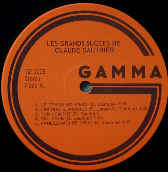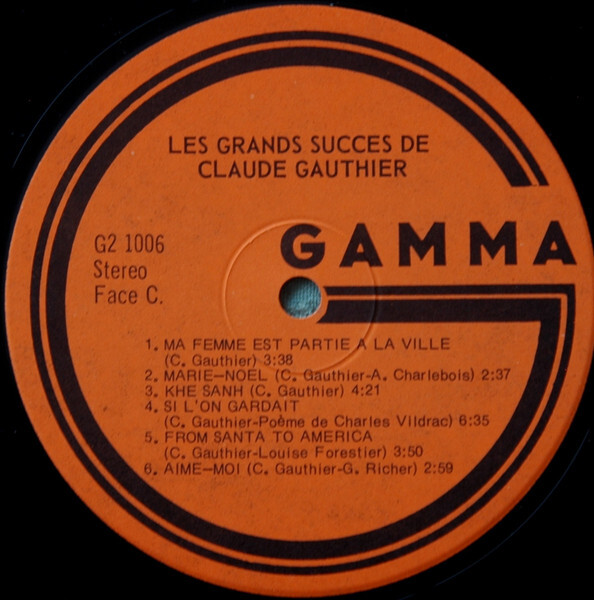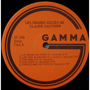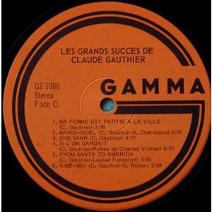 Les Grands succès de Claude Gauthier Disque 1 Face A
