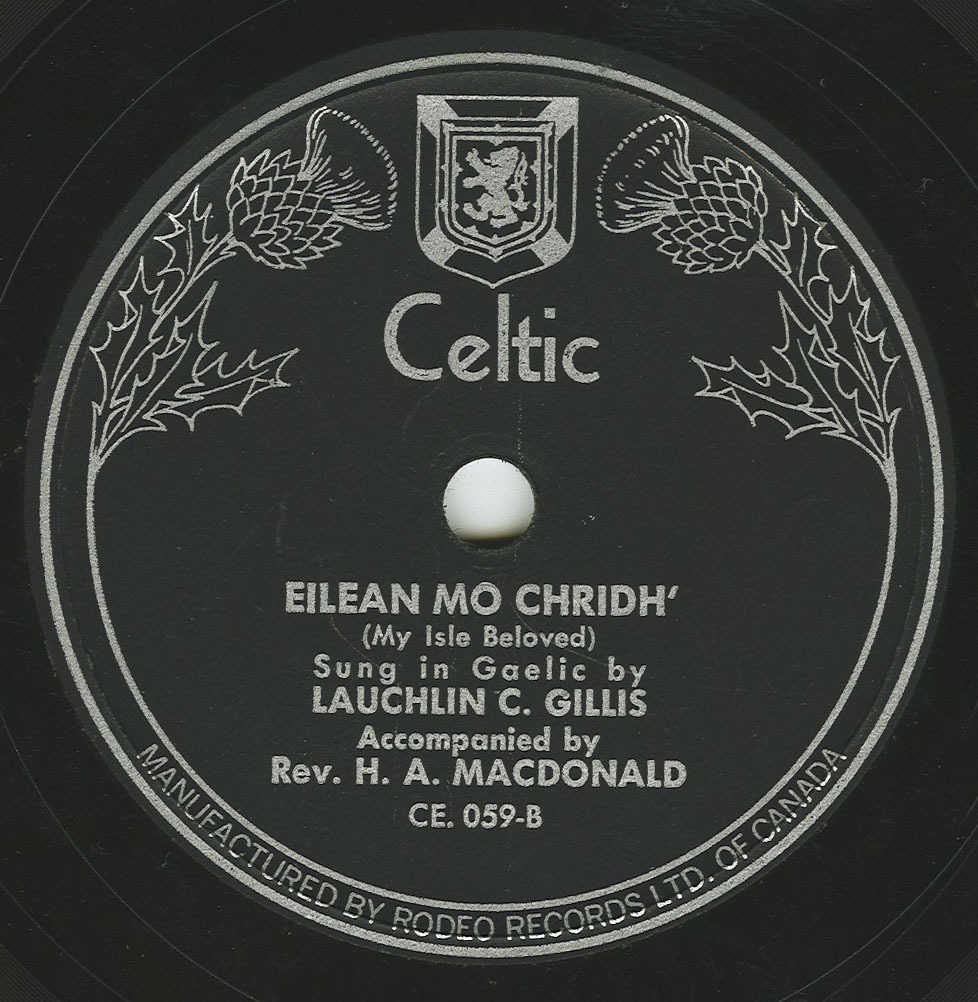 Lauchlin C.Gillis Accompanied by H.A Macdonald on Piano.