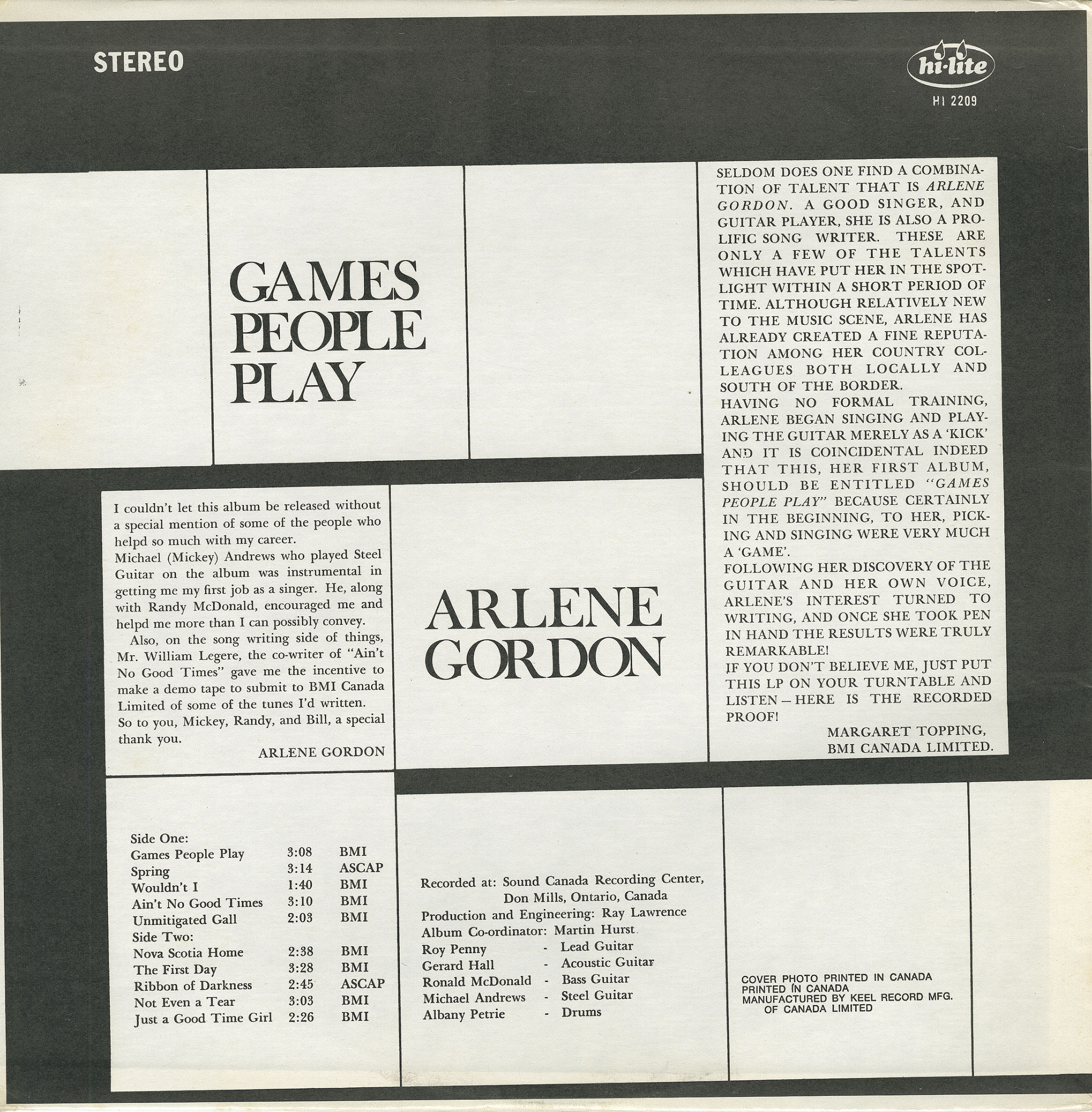 Recorded at Sound Canada Recording Studio, Don Mills, Ontario