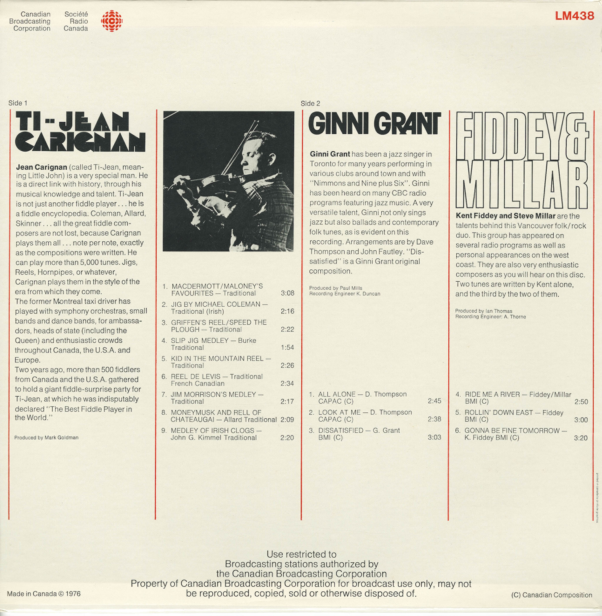 'Dissatisfied' is a Ginni Grant original. This album is a re-issue from her 1975 45rpm single on CBC Radio Canada LM 314.