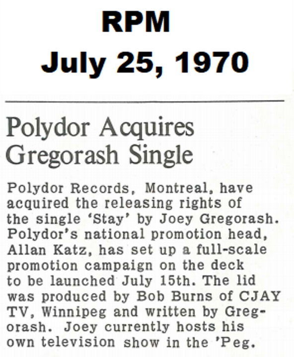 Gregorash, Joey - Stay b/w I'm Easy Come Easy Go