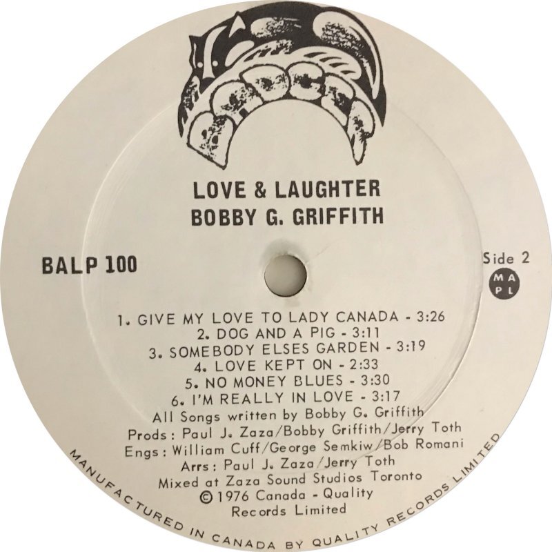Produced by Bobby G. Griffith and Paul Zaza (Side A)