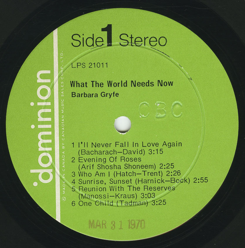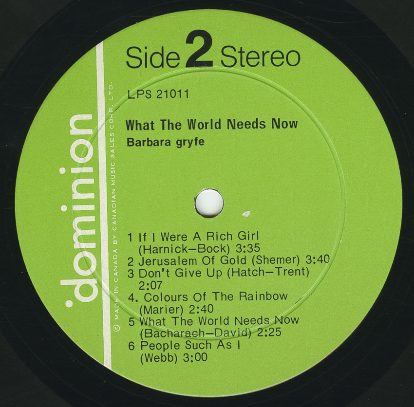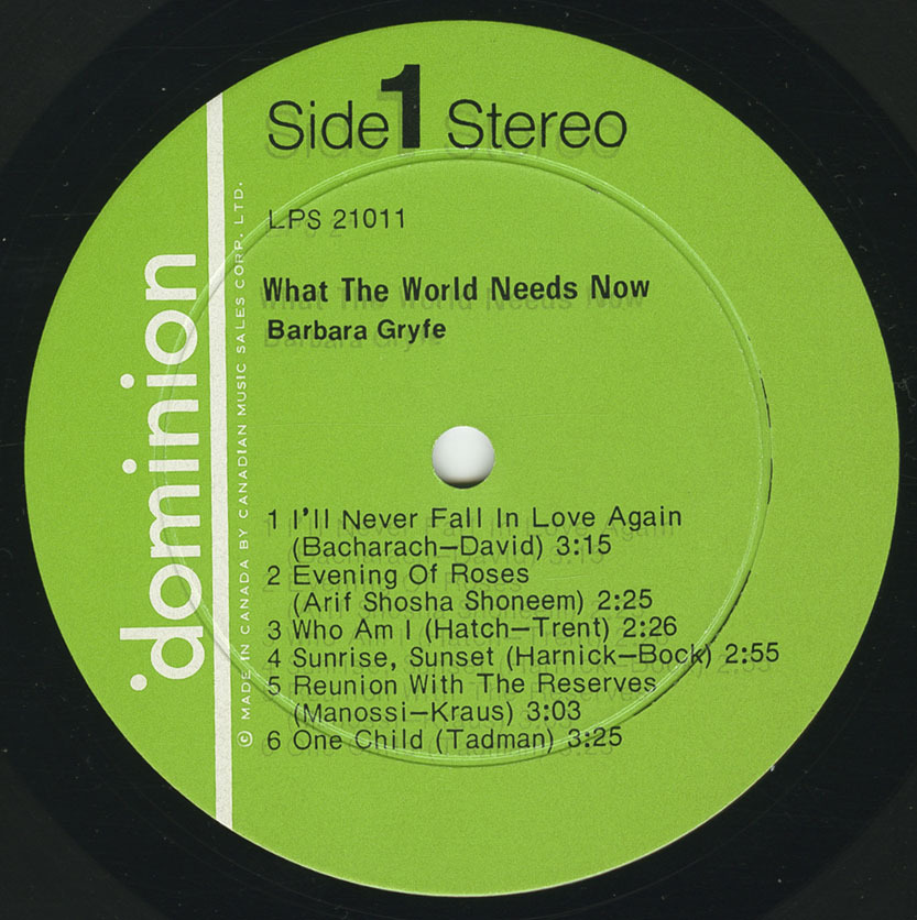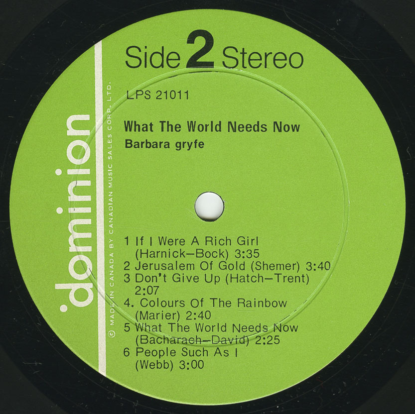 As of a 2009 obituary for her mother, Barbara was noted to be living in Israel, continuing her life and presumably her musical practice away from the spotlight. Her brief recording career remains preserved through What the World Needs Now and her Boot Records single — a youthful, string-laden gem from the golden age of Canadian broadcasting.