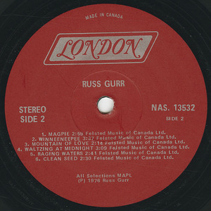 liner notes: Reaching the upper echelons of recognized Canadian artists, came quickly for Russ Gurr. Multitalented, a writer, composer, and performing artist, all professional, he wasn't long gaining international attention.