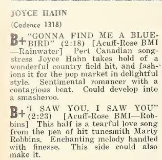Hahn, Joyce - Gonna Find Me a Bluebird b/w I Saw You, I Saw You
