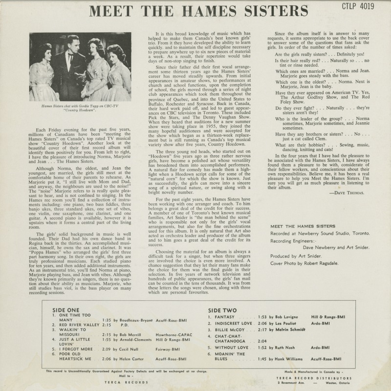 Recorded at Newberry Sound Studios, Toronto, Ontario