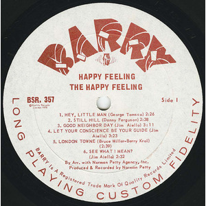 Formed in 1967 and led by singer/keyboardist Jim Aiello, the Happy Feeling issued their eponymous first single a couple of years later, and with lyrics like "Life is groovin' / Everything is movin'", the group`s soft-pop ambitions were plain for all to see. But that rather tepid song belies the better tracks hidden on this album, which was also pressed up on Avco Embassy south of the border. The bouncy 'Hey Little Man', issued as the second single, sports some fine acoustic guitarwork and sounds as if it could dress up the opening credits to some long-lost sixties flick. And 'Good Neighbor Day' should thrill all those pop-rock classicists with its sunny Beach Boys harmonies and that curiously optimistic naivete so common at the time.