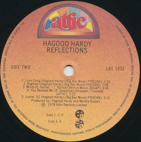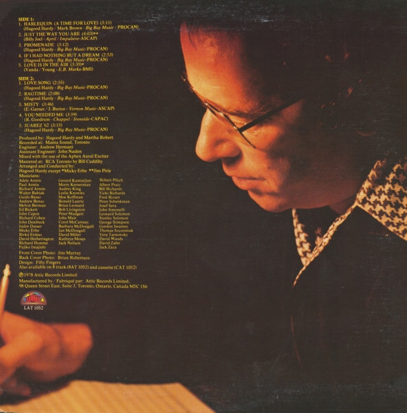Arranged by Hagood Hardy, Jim Pirie (track A2), Micky Erbe (track A5)