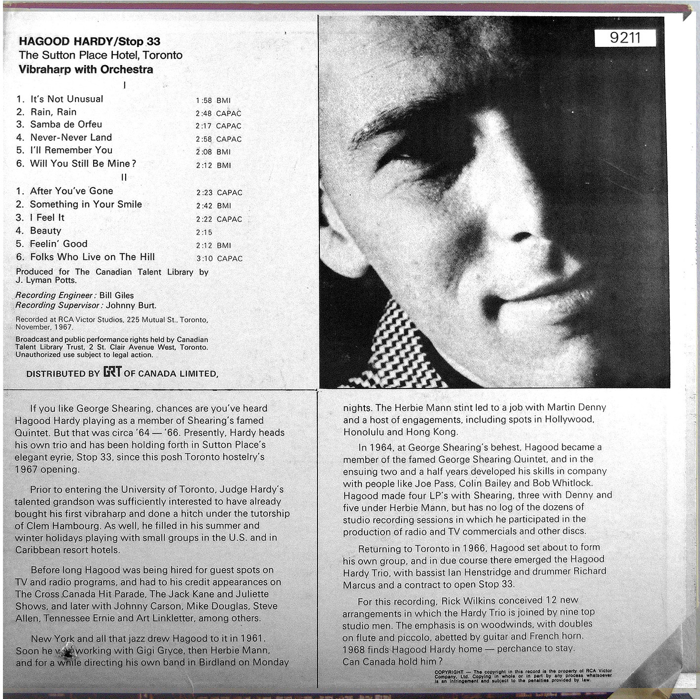As a teenager he studied piano with Edna Lawrence and Ellen Scott, later discovering the vibraphone — an instrument whose warmth and clarity would become his signature voice. While studying political science and economics at the University of Toronto, Hardy took private composition lessons with Gordon Delamont and immersed himself in Toronto’s postwar jazz scene. He was a regular presence at The House of Hambourg, the after-hours club that defined the city’s modern jazz movement and launched figures such as Phil Nimmons, Moe Koffman, and Don Thompson.