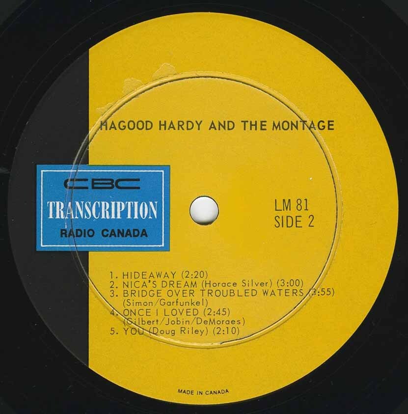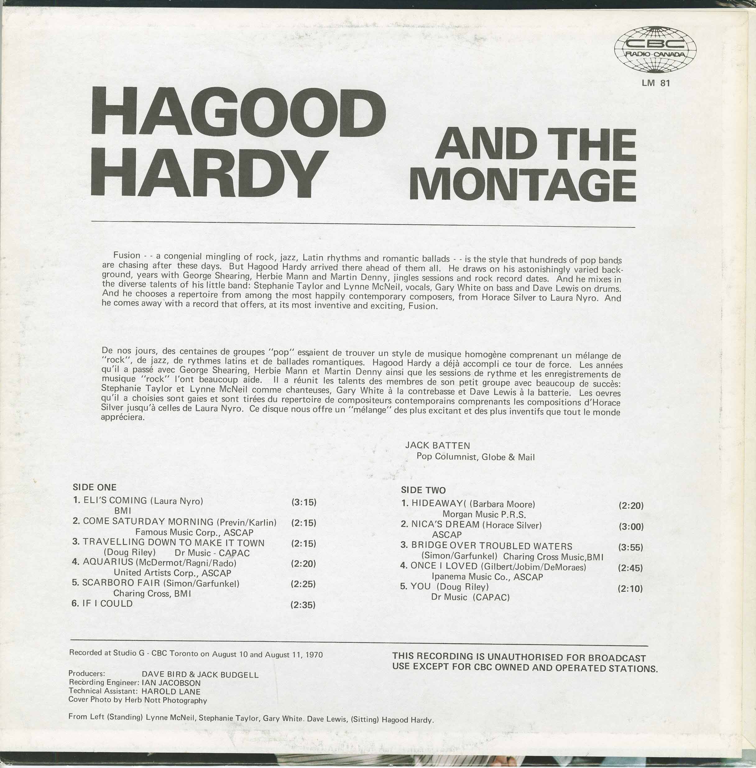 A commercial follow-up, simply titled Montage (GRT 9230-1012, 1972), expanded the concept with guitarist Bill Bridges and bassist Rick Homme, and brought Hardy’s refined arrangements to a broader audience. With covers of “Baby I’m a Want You,” “How Insensitive,” and “Cast Your Fate to the Wind,” it stands among the finest examples of early-1970s Canadian lounge-jazz and remains a benchmark of studio elegance.