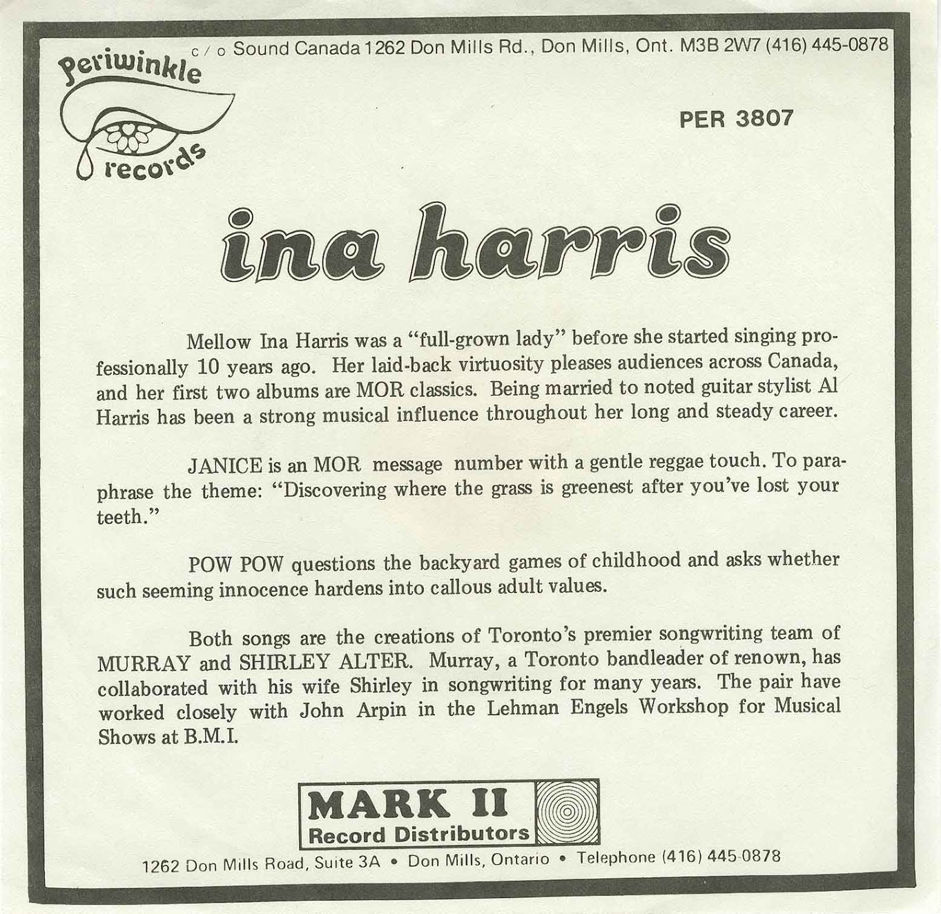 45-Ina Harris-Janice bw Pow Pow INSERT