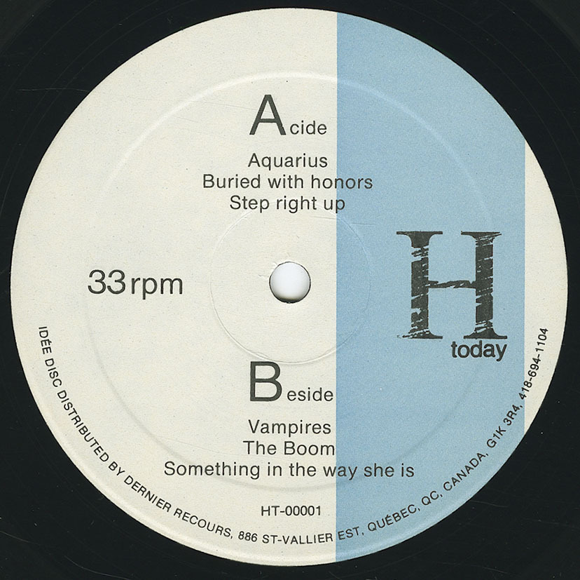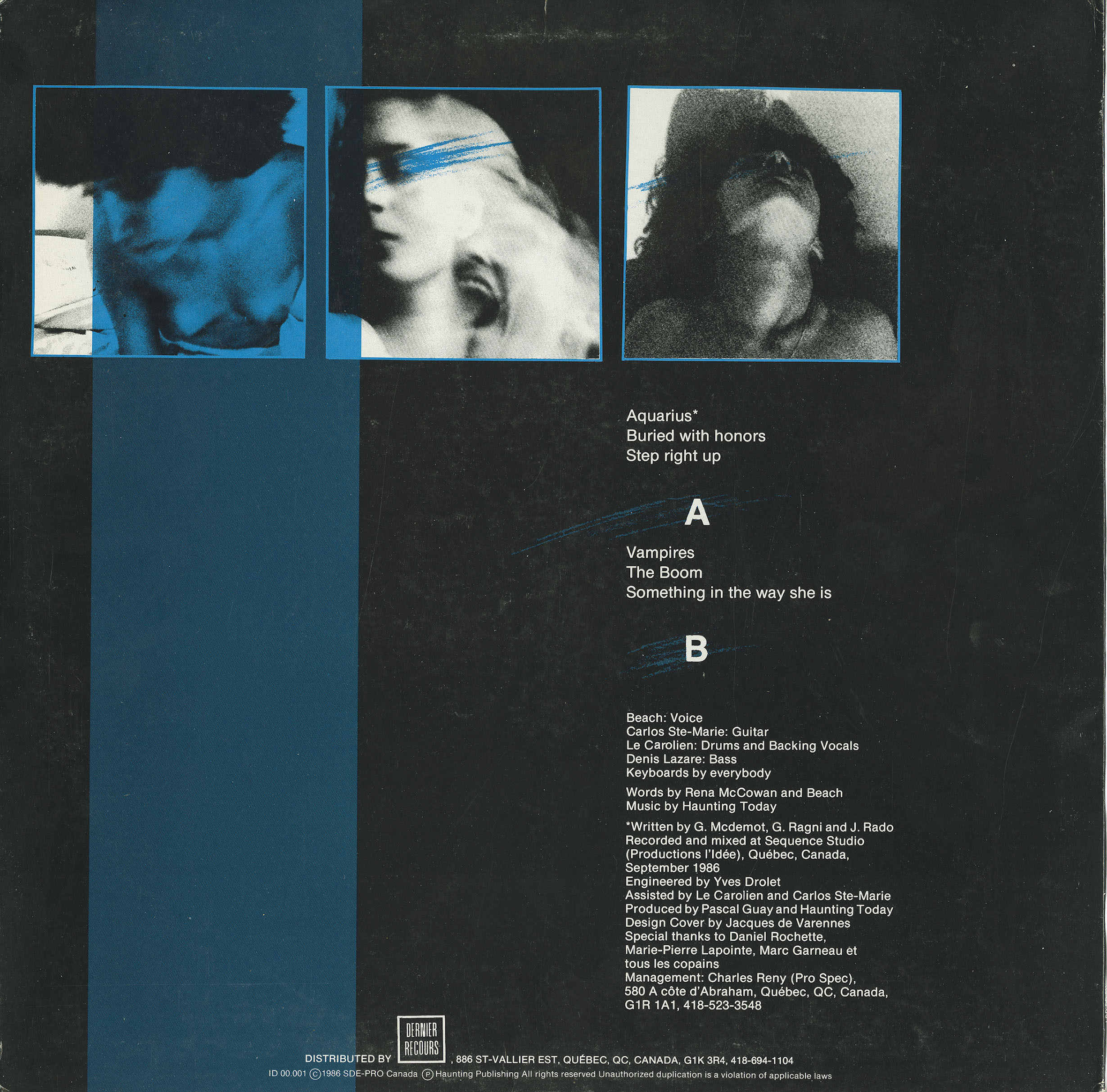 Recorded and mixed at Séquence Studio (Productions l'Idée), St-Vallier Est, Québec, September 1986
