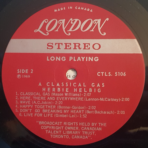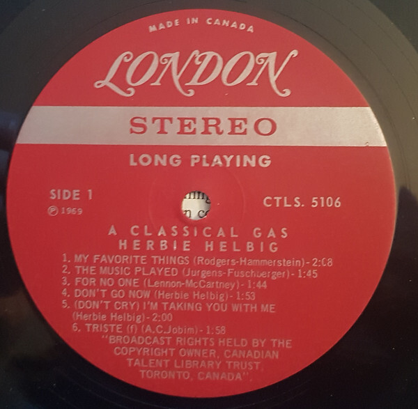 Ten contemporary popular songs arranged in a pseudo classical style." Features Hagood Hardy on vibes and percussion, Helbig on piano and harpsichord, Don Whitton on cello, Bruce Farquhar on drums, and Lin Boyd on bass. Killer jazz combo sounds. Super tasteful and extremely groovy with bossa moves too.