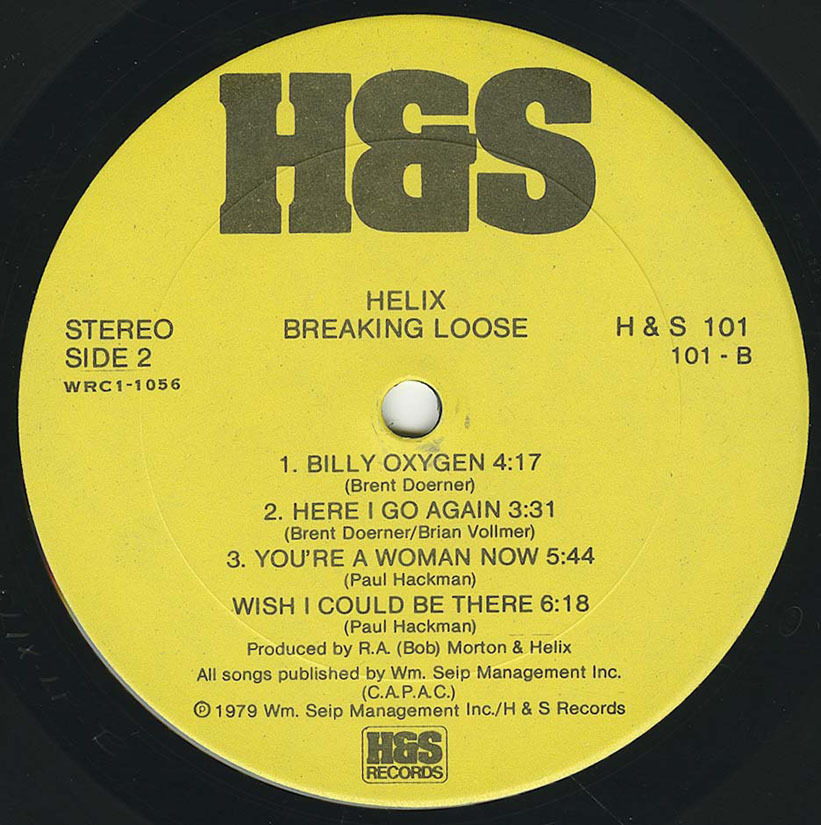 "Don't Hide Your Love", written by guitarist Paul Hackman, was released as the lead single from Breaking Loose. This was followed by a second single, "Billy Oxygen", which was written and sung by guitarist Brian Doerner. The latter track is credited with gaining Helix early Canadian airplay. Outside of Canada, radio host Joe Anthony of San Antonio, Texas station KISS FM began playing "You're a Woman Now" which gave the band an opportunity to perform in the US for the first time. This resulted in a four-date tour of the state, after which they "returned to Canada and were treated as stars by their rabid following", leading to their first TV interview.