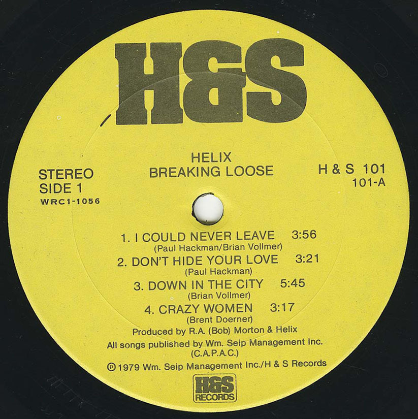After five years of touring with various lineups, Helix recorded its debut album in 1979, funded by money raised by manager Bill Seip. Describing the recording process in 2009, the band's lead vocalist Brian Vollmer recalled that Breaking Loose was tracked over a period of two weeks using 24-track 2-inch tape, during which time the band "ate, slept, and lived at the studio". The album was independently released on the group's own label H&S Records, which stands for "Helix & Seip". According to Billboard magazine, Breaking Loose sold approximately 10,000 units after its initial pressing.