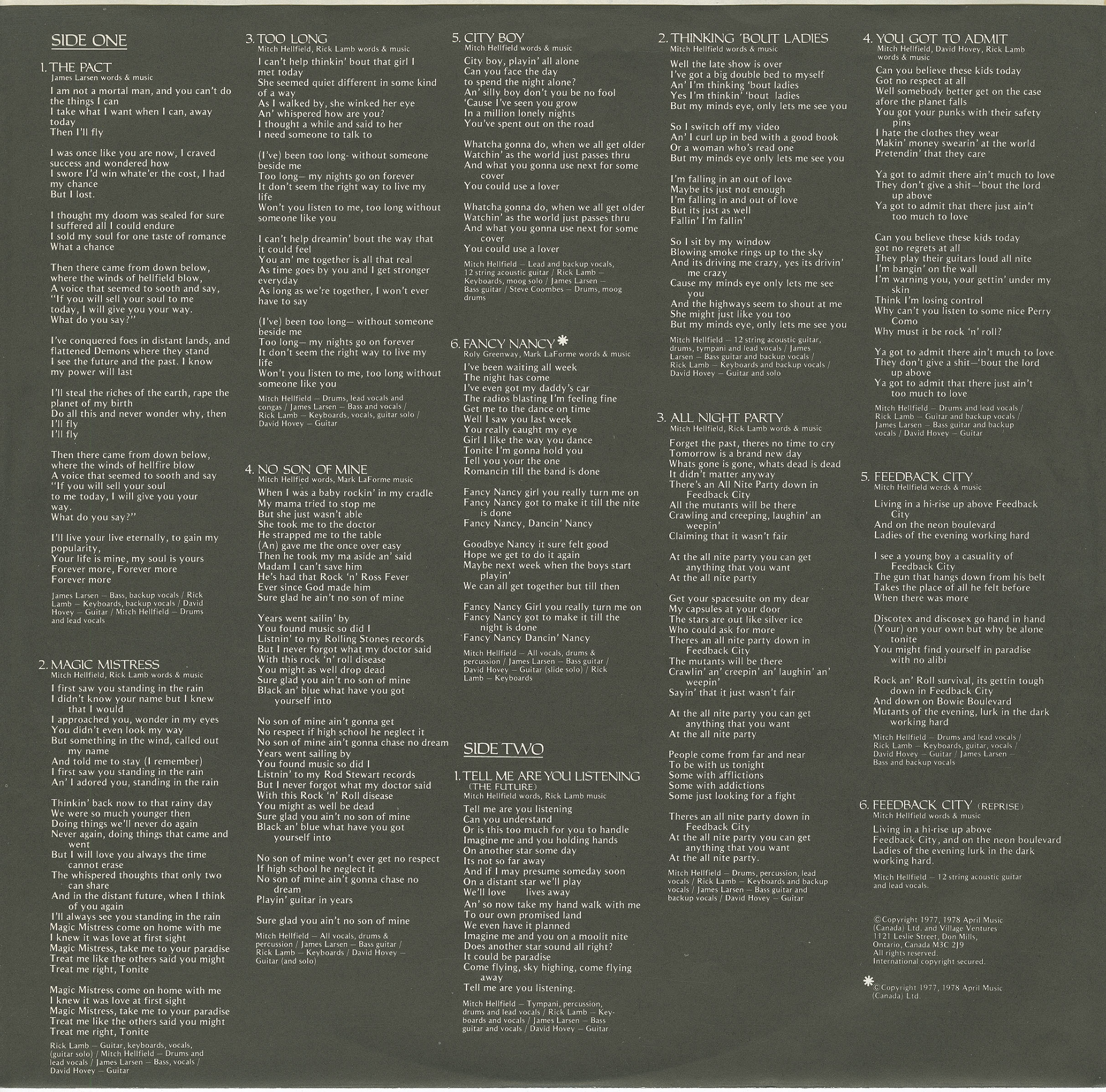Mastered by Bob Gallo, Hayward Parrott, and Philip Joiner at CBS Records Canada Ltd.