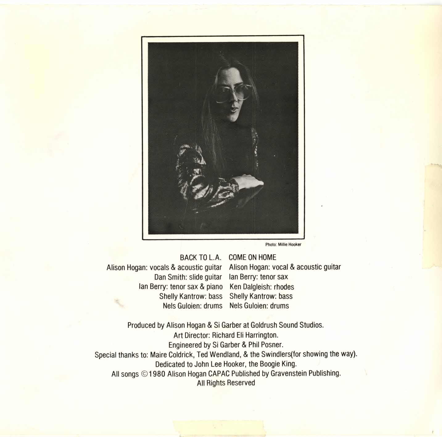 Before moving to Victoria to become an Island girl, Alison Hogan was part of the musical community in Vancouver. After learning the ropes in the Gastown coffeehouse scene in the early 70s, she landed gigs opening for Phil Ochs and Peter Yarrow at the Egress club on Beatty Street. She then took to the road and played venues and festival dates across Canada. After a couple of years of country life in the West Kootenays, she returned to Vancouver in 1978 and joined a quartet that became the somewhat notorious gypsy swing band called The Kitsilano Kat Kickers , who played the early years of the Vancouver Folk Music Festival and performed opening slots for the likes of Jose Feliciano and the late, great Stephane Grappelli. In the 80s Alison released a couple of indie cassettes, enjoyed airplay from song contest compilations and signed a publishing deal with Bruce Allen Music which resulted in a Japanese single (which she sang in both English and Japanese) of her award-winning song Another Girl. Since then she has had numerous indie cuts with country artists, including Angel In Your Eyes by Lynne Taylor Donovan , and Woman She Used To Be , which was seen on CMT as the debut video for BC bluegrass band Tumbleweed.