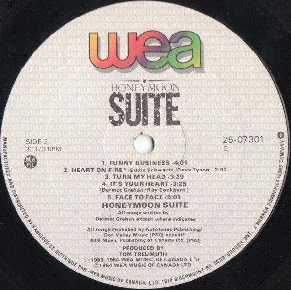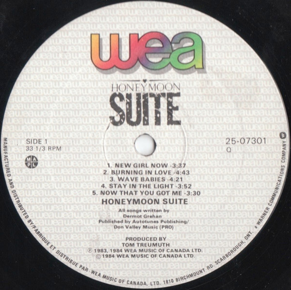 Honeymoon Suite is the debut album by Canadian rock band Honeymoon Suite, released in 1984 on Warner Bros. Records. In 1990 it was certified Triple Platinum in Canada (in excess of 300,000 copies sold). All four singles - "New Girl Now", "Burning in Love", "Wave Babies" and "Stay in the Light" - were also certified Gold in Canada.