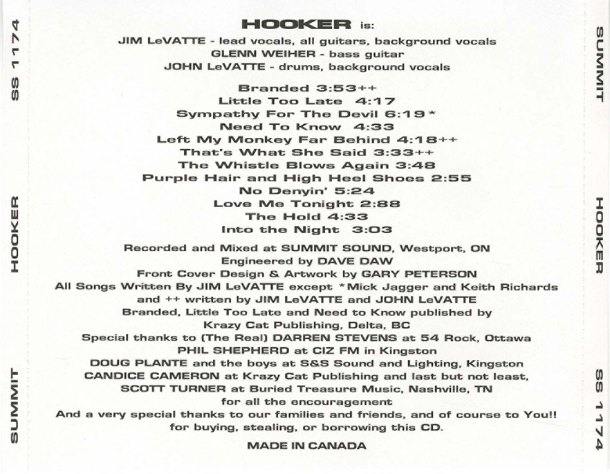 Recorded and mixed at Summit Sound, Westport, Ontario