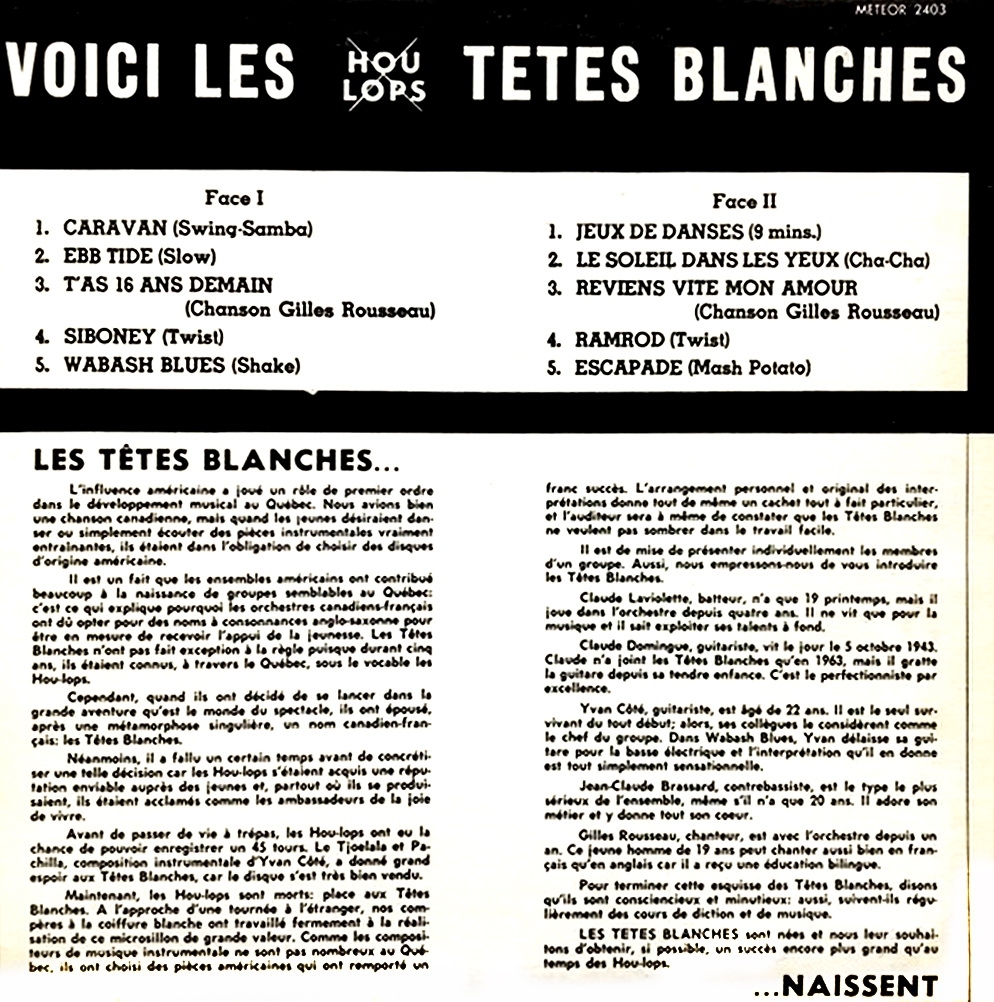 Les Hou-Lops disbanded in 1969. Tragically, lead singer Gilles Rousseau passed away in 1972 at the age of 27, followed by drummer Claude Laviolette in 1981.