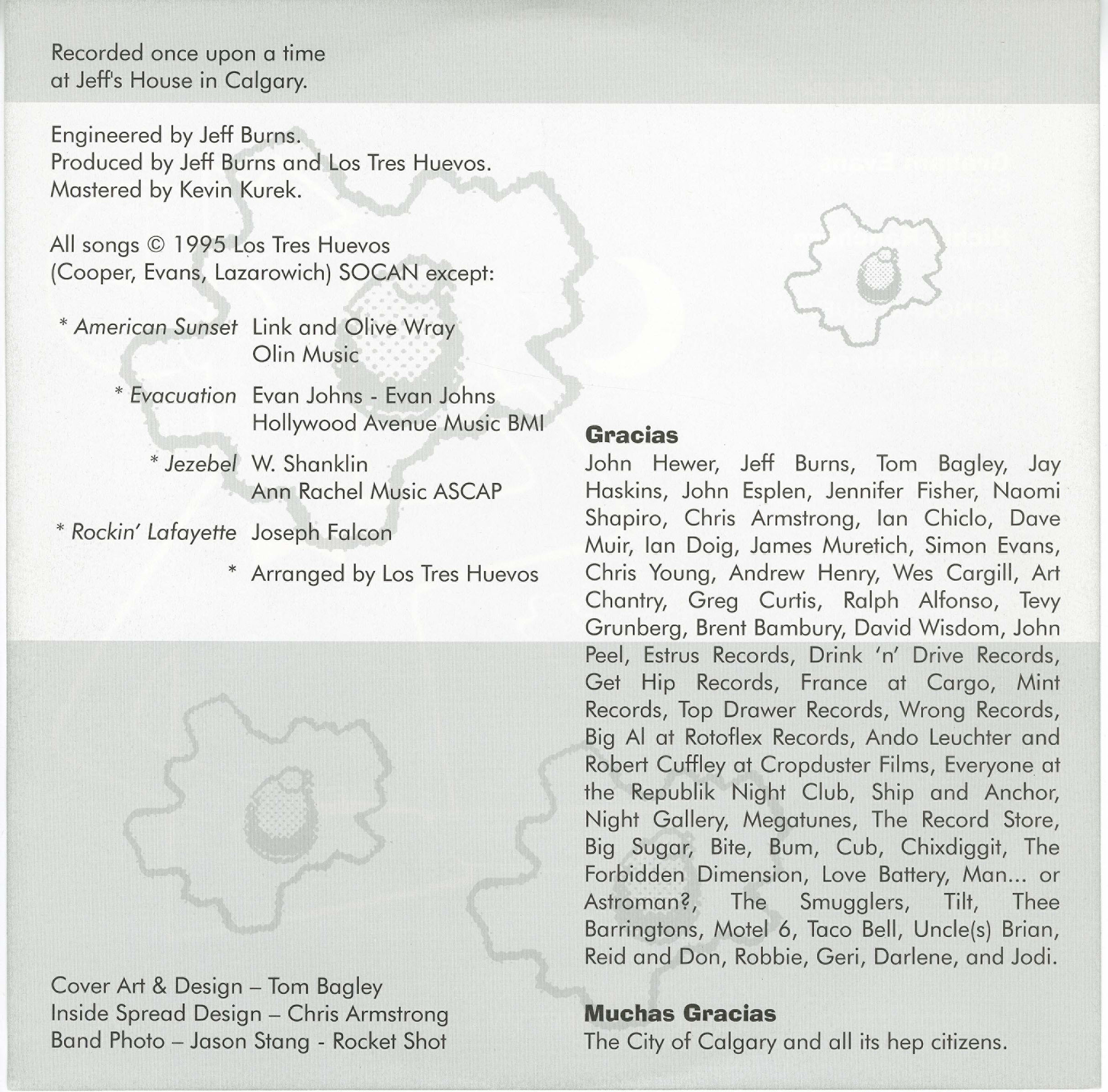 Produced and engineered by Jeff Burns and Los Tres Huevos