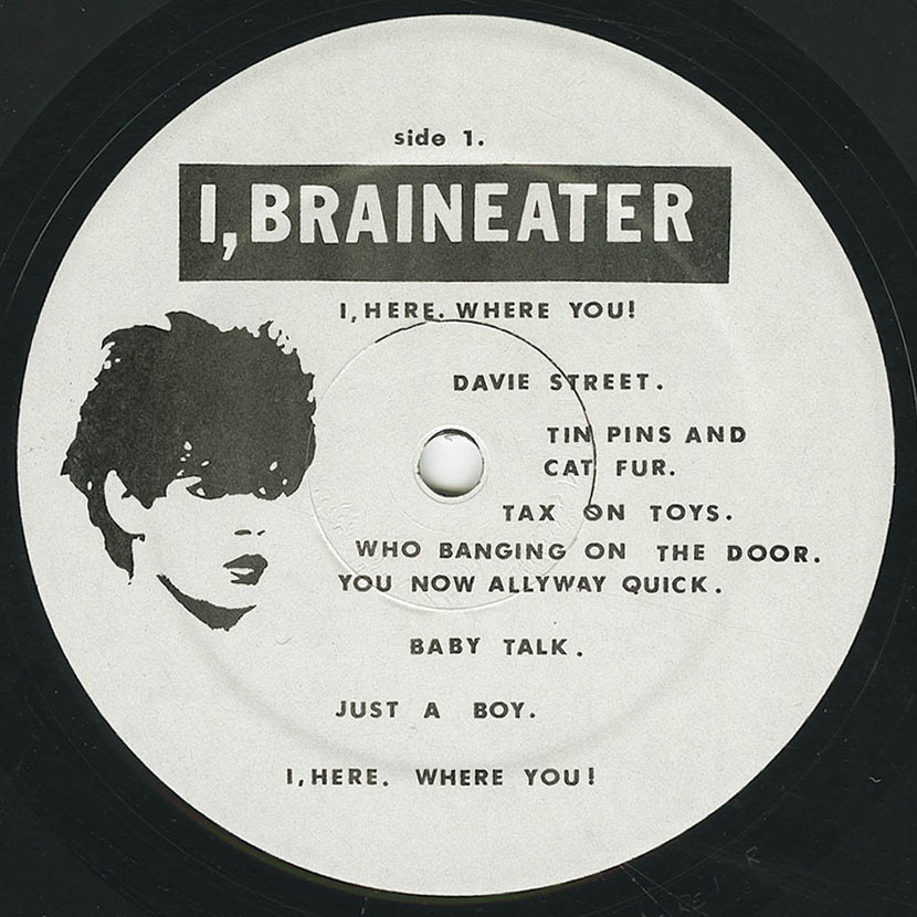 The first musical incarnation appeared in 1979 under the name Braineater (often referred to retrospectively as The Braineaters), an all-star Vancouver ensemble that Cummins assembled for performances and recordings. This debut lineup included scene heavyweights Buck Cherry of the Modernettes and Art Bergmann of the K-Tels/Young Canadians, musicians whose involvement instantly tied the project to Vancouver’s explosive punk moment. Their debut EP—issued as a seven-inch and packaged in a colour silkscreened manila envelope—was as much an art object as a record, a sharp jolt of punk minimalism wrapped in Cummins’ signature visual style. The sleeve read “I, Braineater,” though the group was known as Braineaters at the time, setting the stage for the persona to eventually eclipse the band entirely.