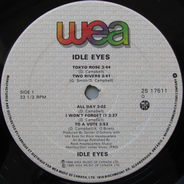 As “Tokyo Rose” was climbing the charts, in 1985 Idle Eyes opened for Toto and later Tears For Fears. Later they opened for Bryan Adams on tour, and also Red Rider. Before the year was through Idle Eyes won a Juno Award for Most Promising Band. After 1985 John Webster left the band and was replaced by Bruce MacKenzie.