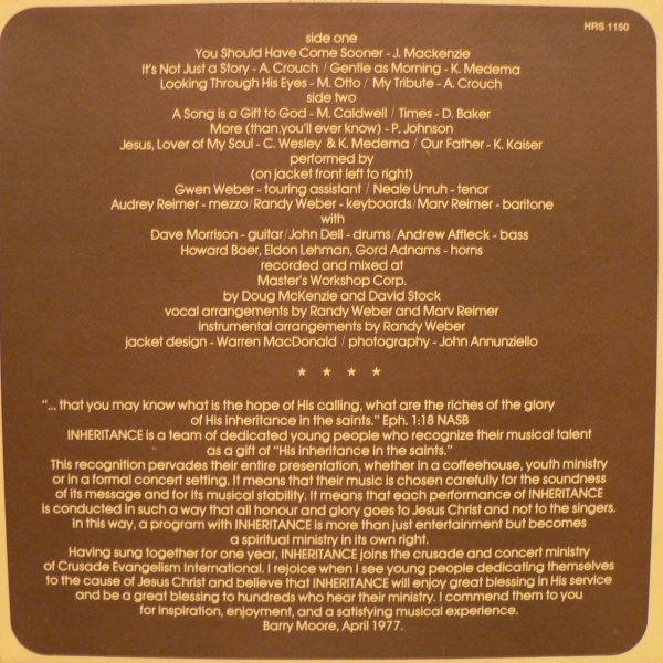 The only interesting aspect of this record, aside from its incredibly creepy cover, is that it was produced by Doug McKenzie. Strange Brew indeed! Except the Doug McKenzie that you are thinking about is a fictional character. This album is Canadian and I've often wondered if this Doug McKenzie was perhaps the inspiration to the character as both Dave Thomas (who played Doug McKenzie) and Rick Moranis acted with SCTV which was filmed in Edmonton, Alberta (where this album was made).