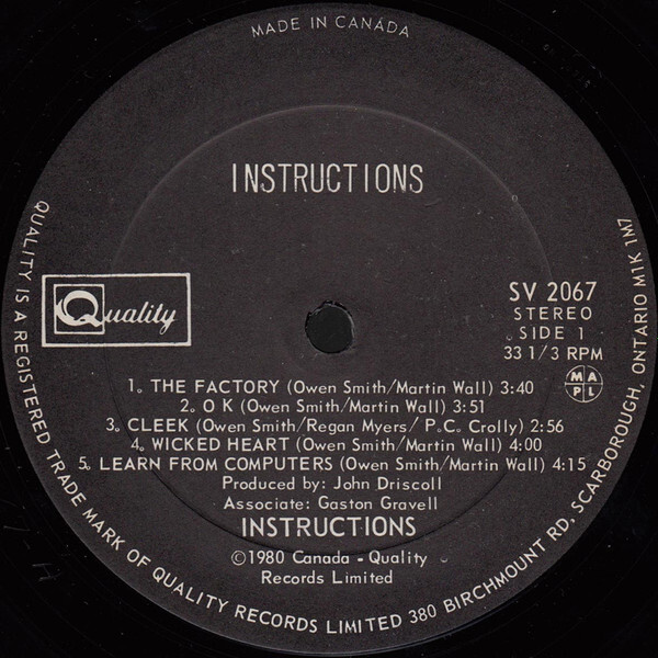 Written by Martin Wall ('The Factory', 'Ok', 'Wicked Heart', 'So You Learn From Computers', 'The Extra', 'Suburban Dream', 'Naked Deer', 'Don't Say Love', 'Ha - Ha Ha'); Owen Smith, P.C. Crolly ('Cleek'); and Regan Myers ('Cleek')