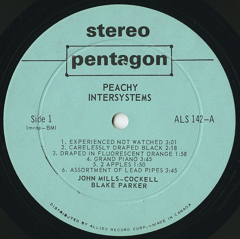 The sound work of Intersystems cannibalized stray bits of McLuhanism, psychedelia, Cagean experimentalism, and even the modernist gestural strains of nascent electronic music, yet it was all couched within a very particular DIY ethos. Peachy pushes the meticulousness of Number One Intersystems (NMN 093-1LP) even further and, as such, represents a more balanced amalgam of Intersystems' various disparate stylistic and emotional elements. The truncated opening cut "Experienced Not Watched" is deceptive, beginning with lush, tuneful organ swells that almost border on the ecclesiastical and washed-out metallic pulsations. Yet, the track comes to an abrupt end. What follows is thinner and more gestural, imbued with both poise and awkward buoyancy, owing more to musique concrète than anything on Number One Intersystems. Each sound is framed within ample negative space, inviting listeners to savor each moment, yet its dynamism, and boisterousness, mischievous character steer it well away from being too precious. This impression is reinforced by the decidedly rugged and opaque timbre of much of the sonic activity. Peachy's balance can also be attributed to its consistent flow. The album may superficially be divided into discrete tracks yet the pieces follow one another seamlessly, conveying a single arc, with many continuities and recurring motives. Many of these motives are just mere pithy jolts or shudders of white noise that dart in and out of the aural scenery. In "So They Took The Guns", it matches the gestural profile of the opening cut - it's suddenly lopped off, shifting decisively back toward a slice of Parker's grim narrative, planted squarely in the foreground amidst various percolating abstract chatter. Just as the musical textures have a more unified logic, Parker's texts are also more integrated into the total picture, both aurally and thematically. Despite its sharp veerings into death and violence, the abrupt leaps have a more absurd timbre, than one of abjection and morbidity. And the sudden shifts, of course, are complemented well by the restless intensity of Mills-Cockell's contributions. Parker's voice is subject to a wider spectrum of electronic treatments than before. They're also situated in various places, both spatially and within the mix. Re-mastered by John Mills-Cockell. Mastered for cutting by Giuseppe Ielasi.