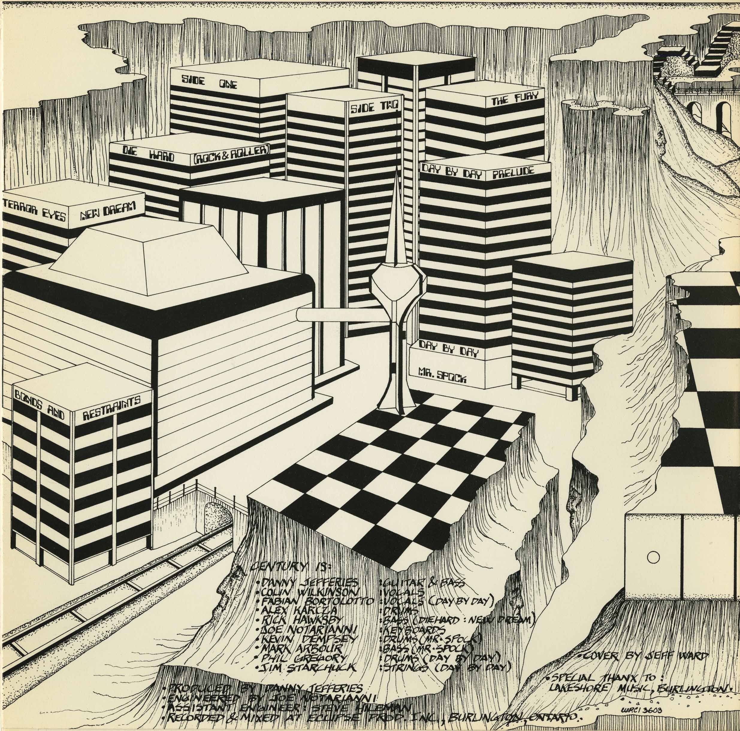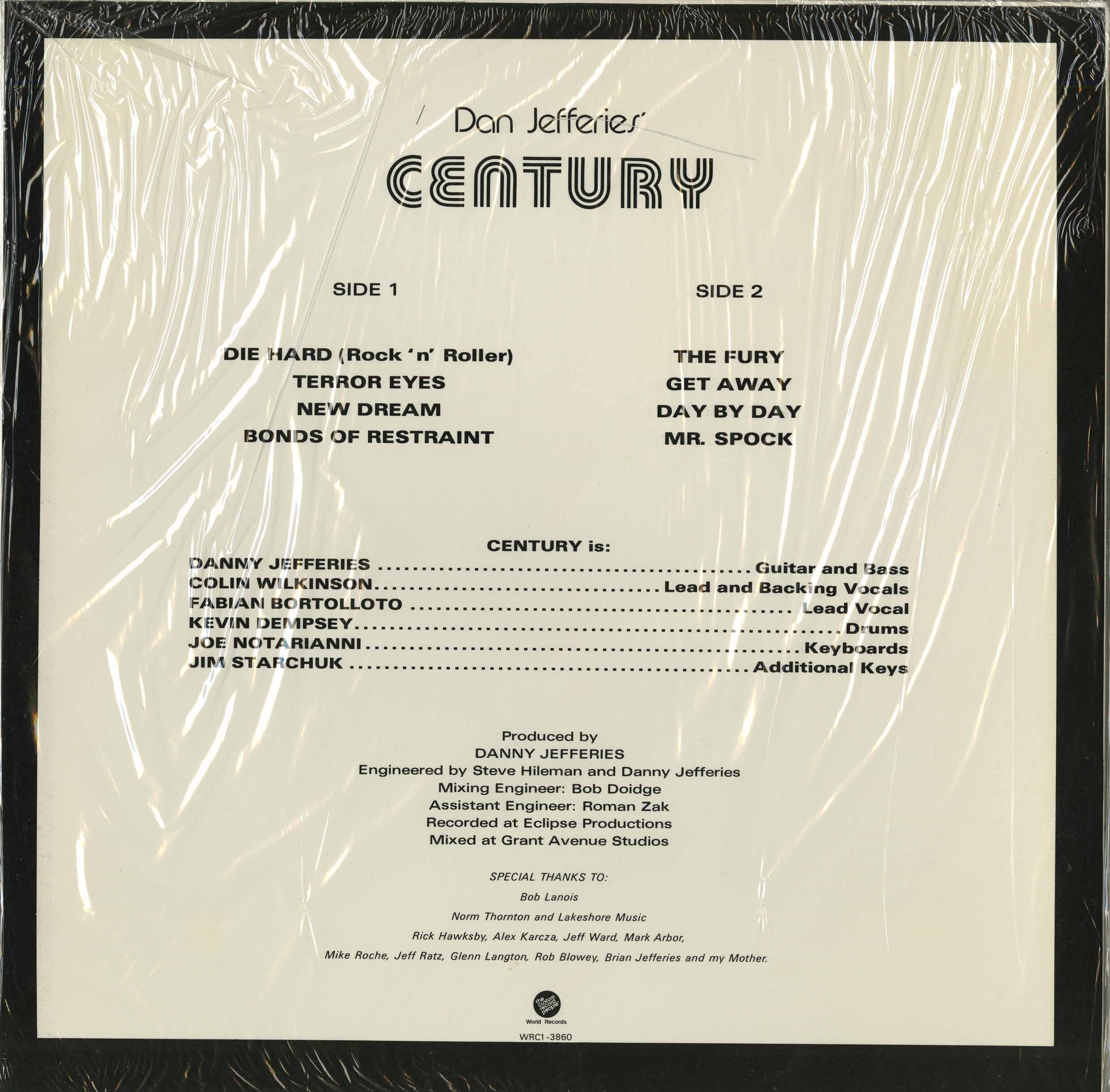 This album was released with two different covers, first pressing has the black cover with white lettering (as showed above) and credited to Dan Jefferies' Century, second pressing has a black and white fantasy cover and was credited only to Century, omitting Dan Jefferies from band's name.