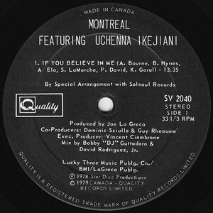 Special thanks to Anna Bibbi and Joe Marandola for their collaboration and to Glen LaRusso at Salsoul
