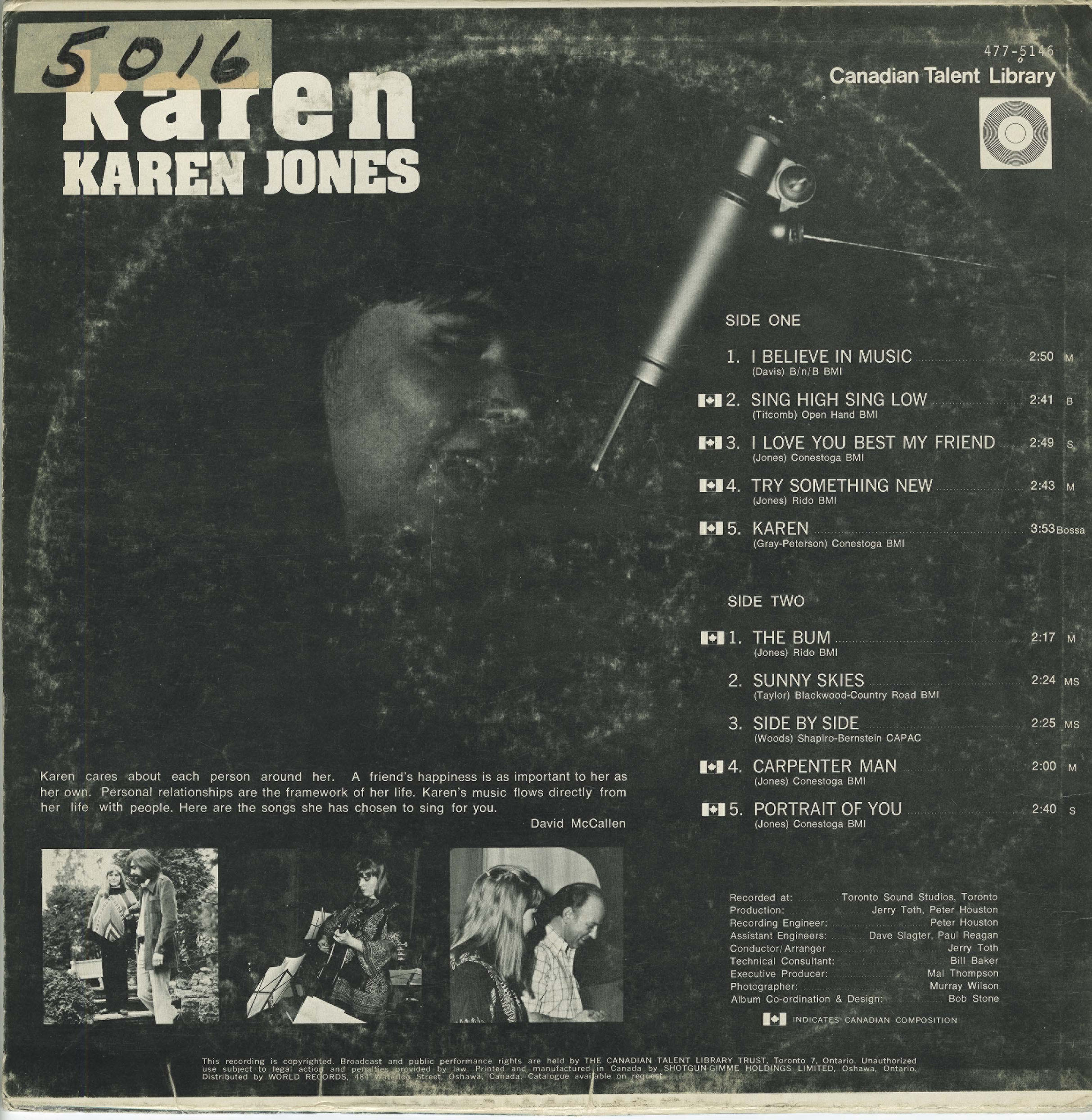 Recorded at Toronto Sound Studios, Toronto, Ontario
