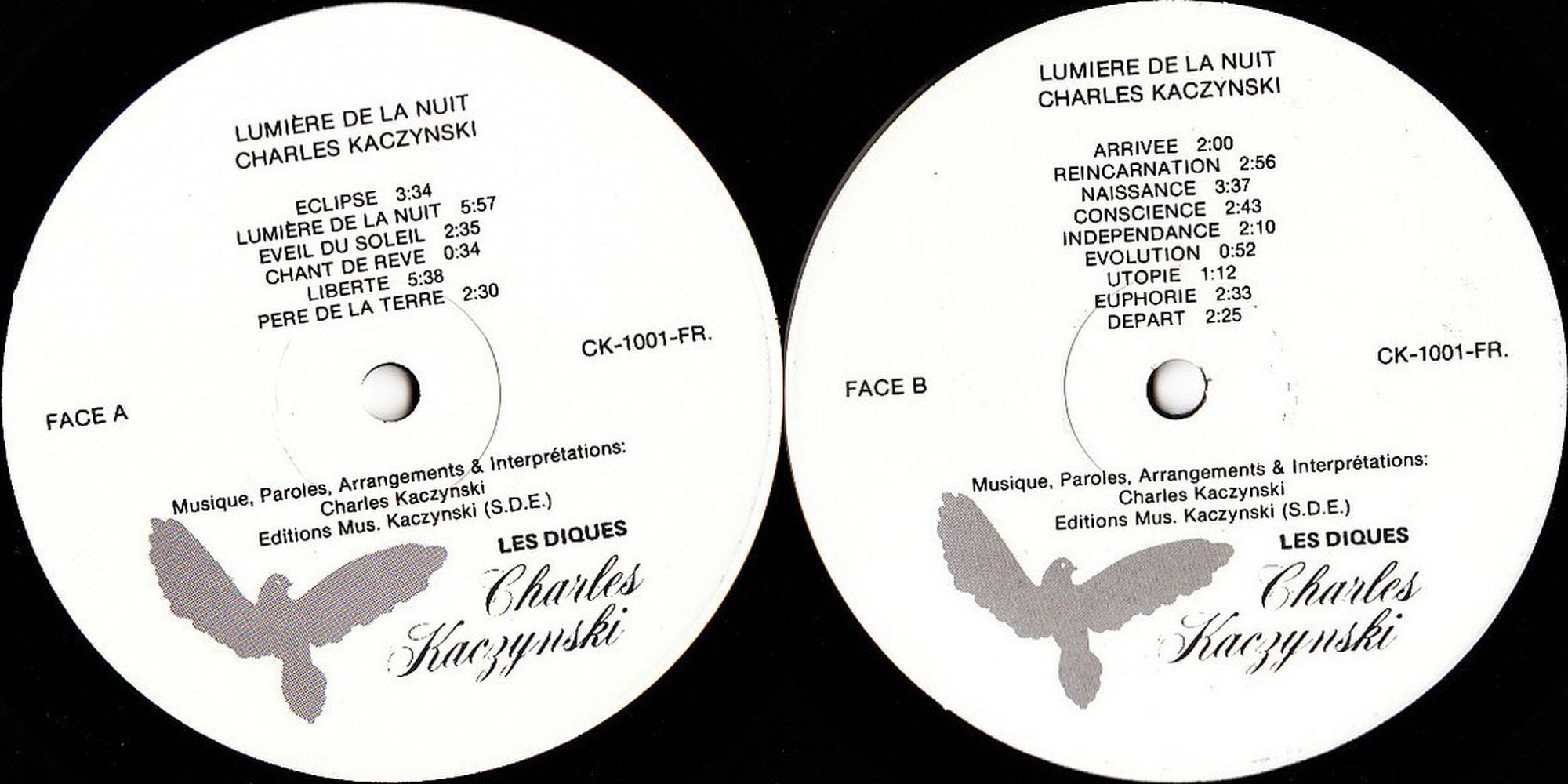 Charles Kaczynski: vocals, violin, cello, acoustic guitar, organ, flute, bongos, congas