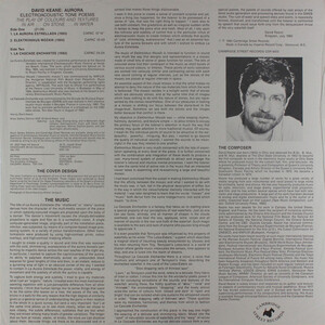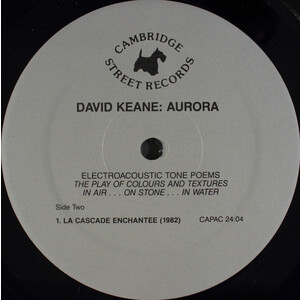 Keane was an Associate of the Canadian Music Centre and a member of the Canadian League of Composers, and he is represented on dedicated albums—Lyra, Aurora (Electroacoustic Tone Poems), and Dialogics—as well as on compilations such as The Anthology of Canadian Music. His vinyl-era output was later gathered in a two-disc anthology issued in April 2023, drawing together Lyra (Music Gallery, 1979), Aurora (Cambridge Street Records, 1985), and his CAPAC “Portrait Musical” single, with contextual material from the original releases.