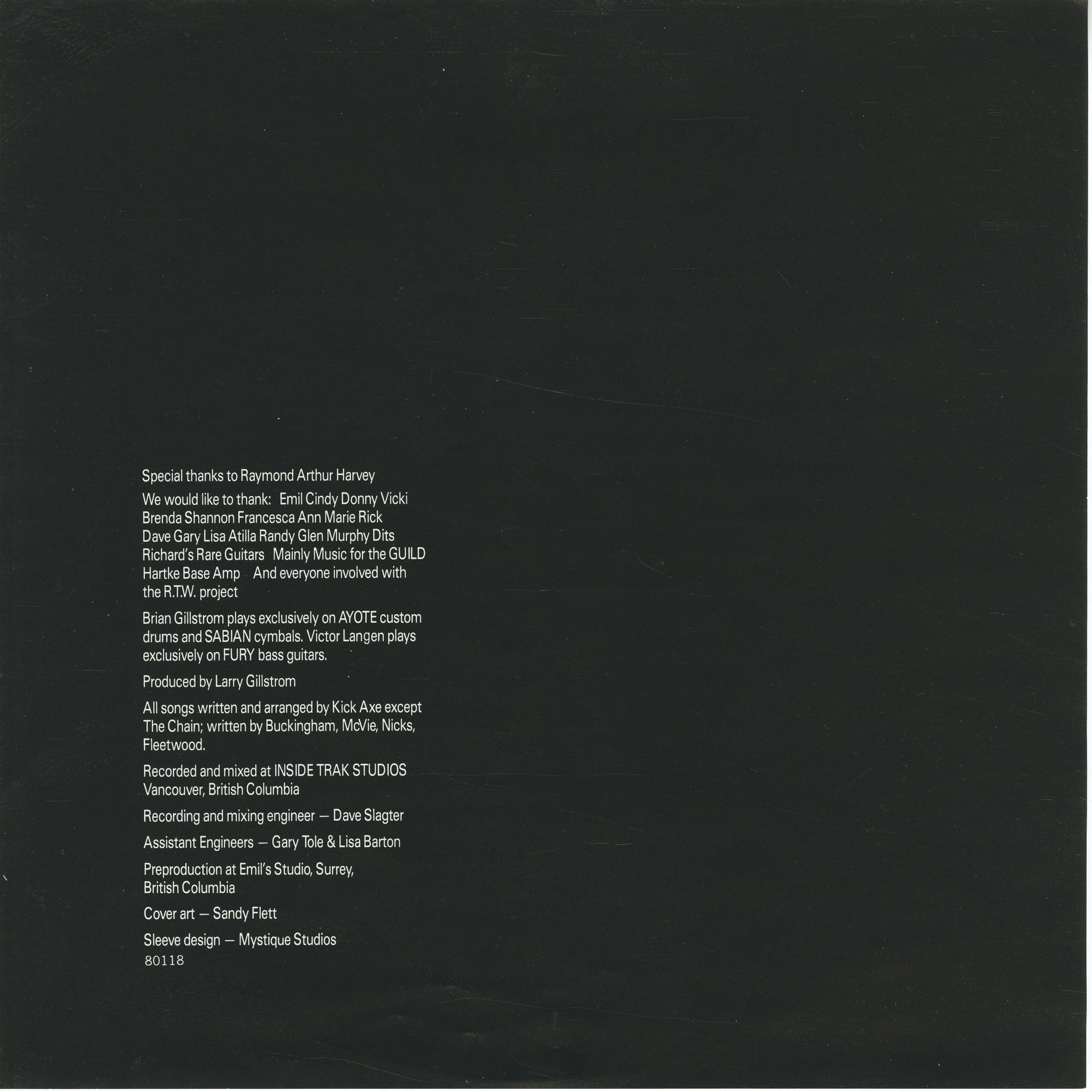 Recorded and mixed by Dave Slagter at Inside Trak Studios, Vancouver, British Columbia
